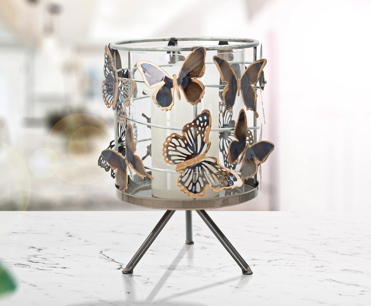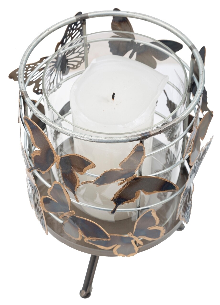 Butterfly Gyertyatartó, Mauro Ferretti, Ø 15x20 cm, vas/üveg, színes