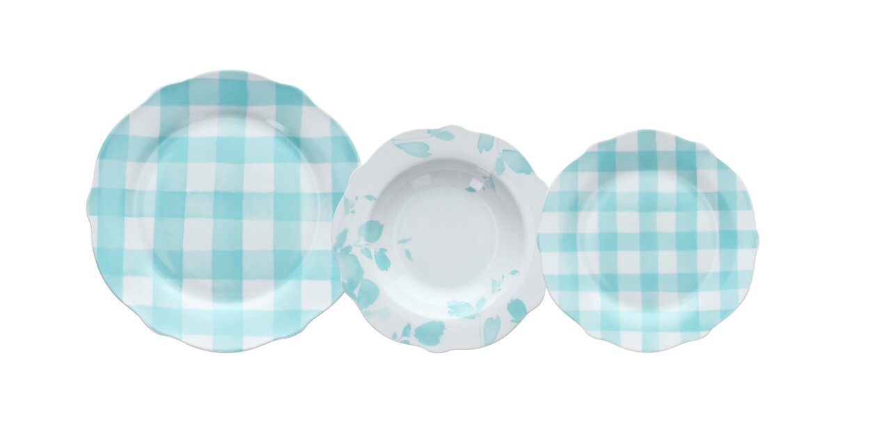 Cappettata Hihhy Turchese 18 darabos Étkészlet, Tognana, porcelán, fehér/kék