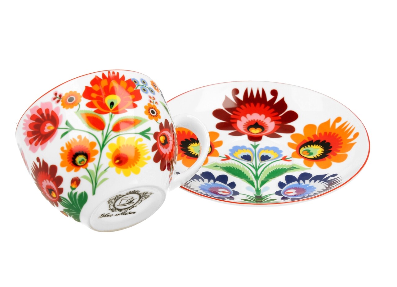 Ceasca cu farfurie, DUO, Lowicz,280 ml,portelan, multicolor