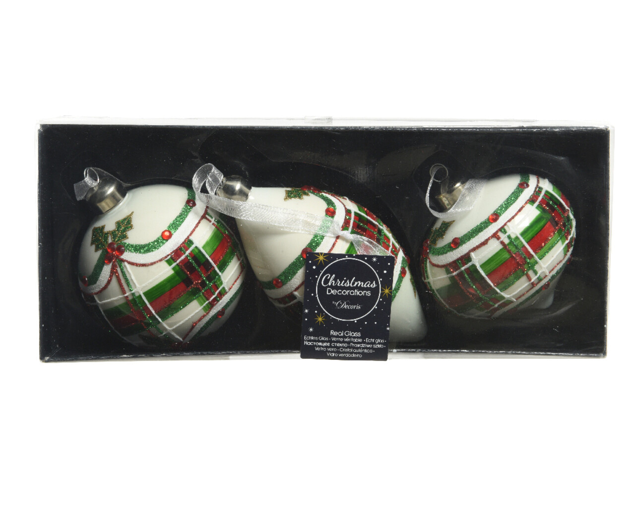 Checker holly leaf decal 3 db Díszgömb, Decoris, üveg, színes