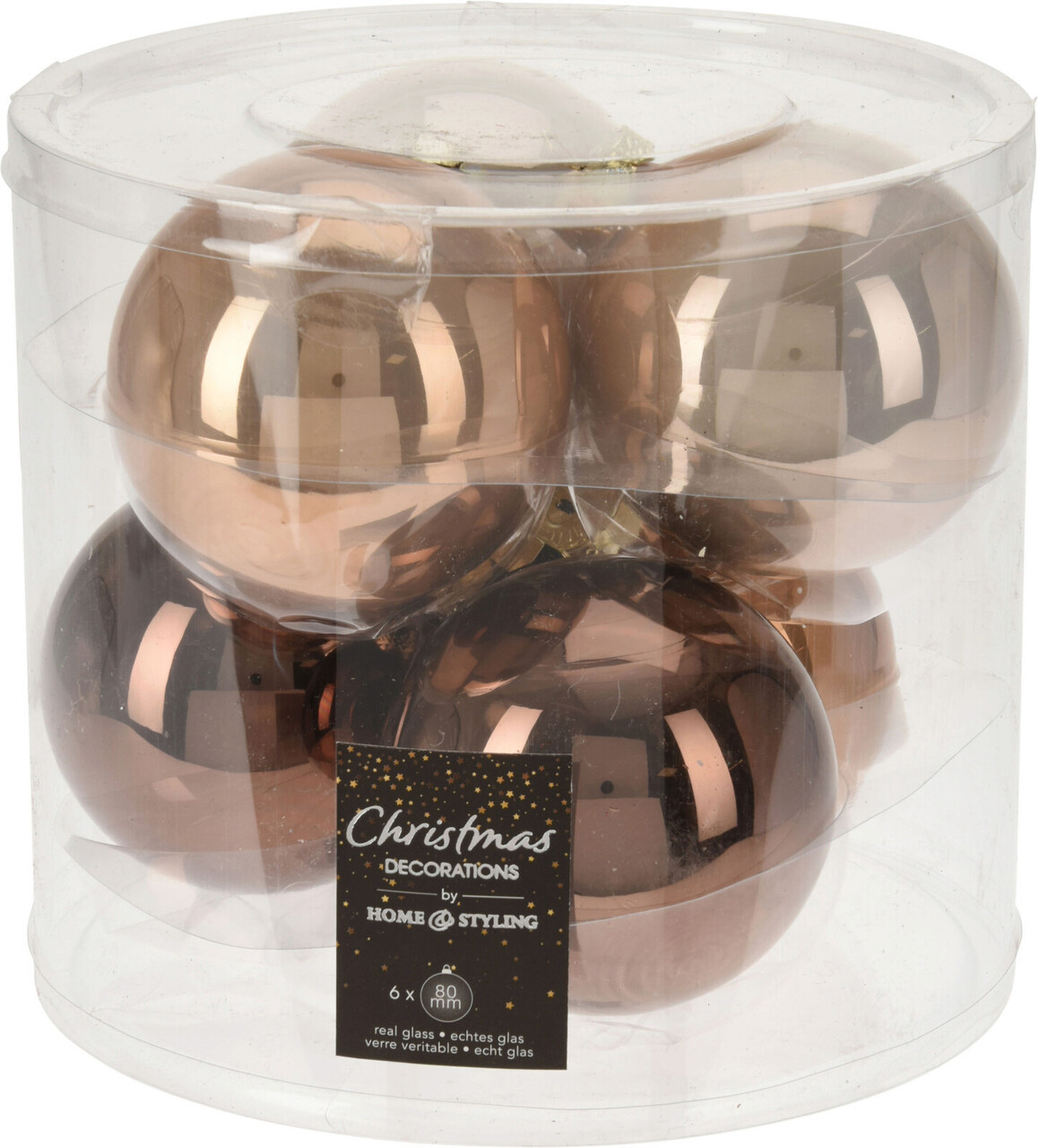 Christmas Glam 6 db Díszgömb, Ø8 cm, üveg, borostyán