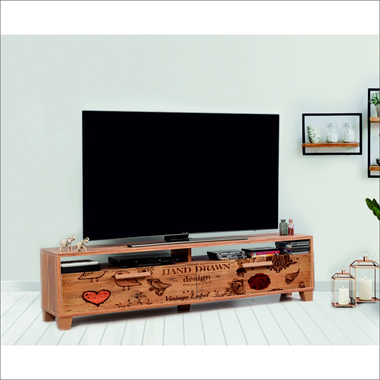 Comoda TV Box Retro 160, Vella, 160x35x41 cm, multicolor