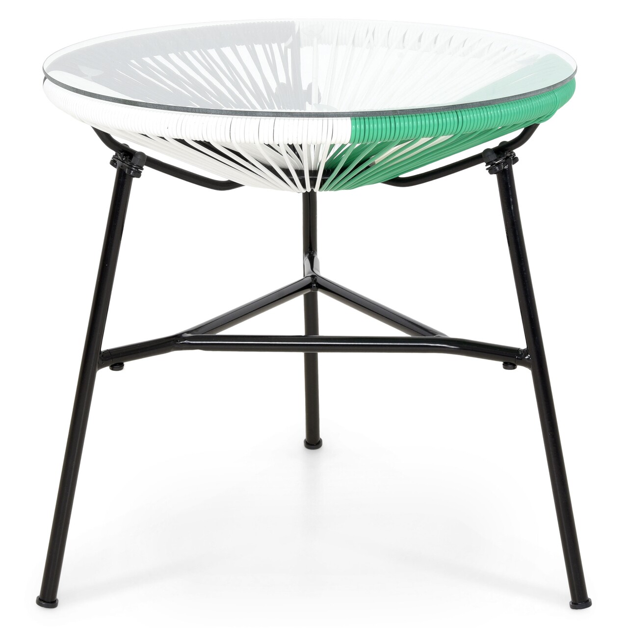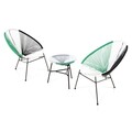 Corfu kerti terasz/bútor szett 2 fotel + asztalka, acél, zöld/fehér/fekete