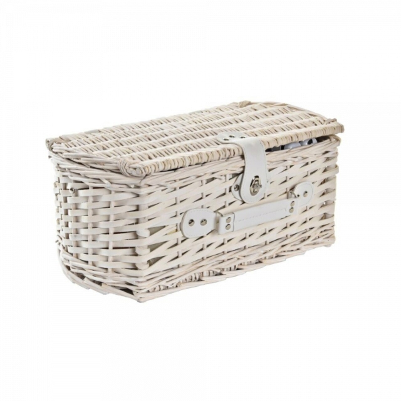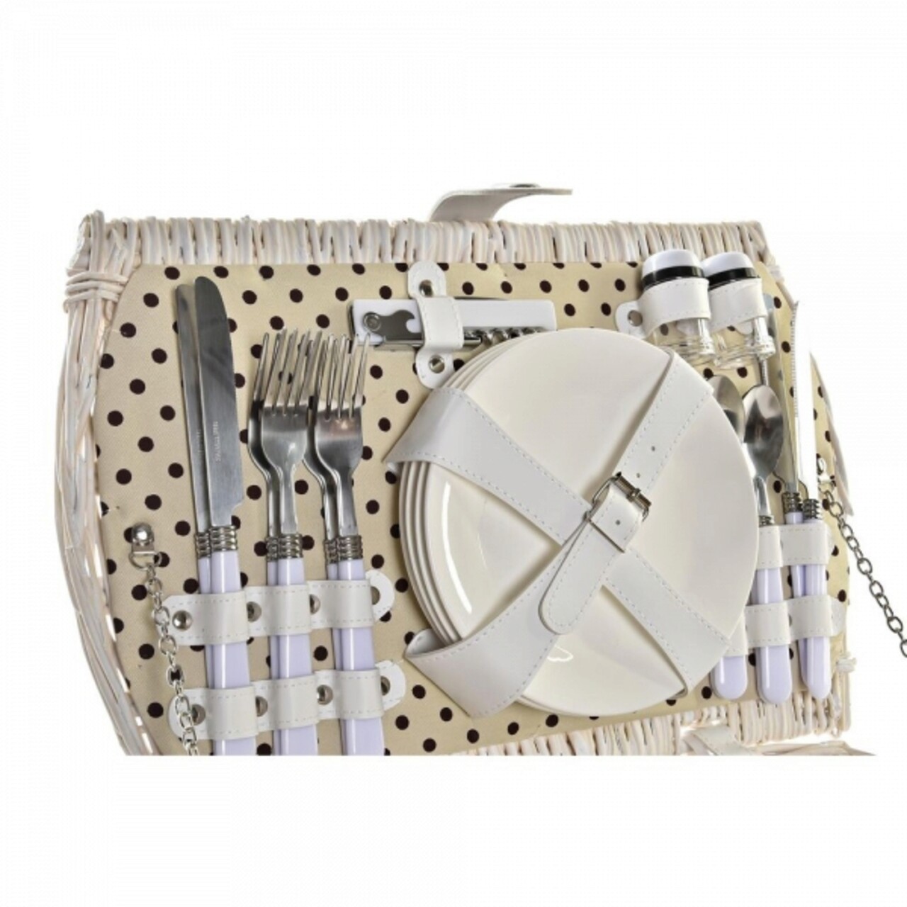 Cos de picnic pentru 4 persoane, DKD Home Decor, 44 x 28 x 19 cm , rachita, bej/alb