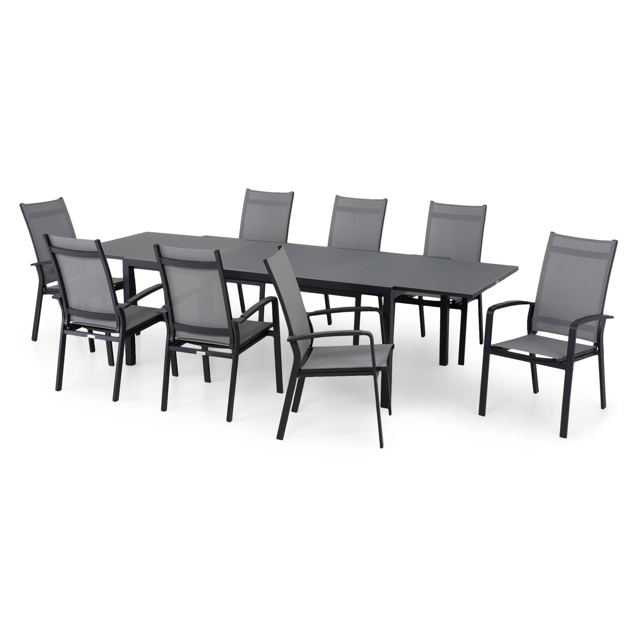 Cosmo 8 db Szék állítható háttámlával és kihúzható asztal, alumínium, fekete/szürke