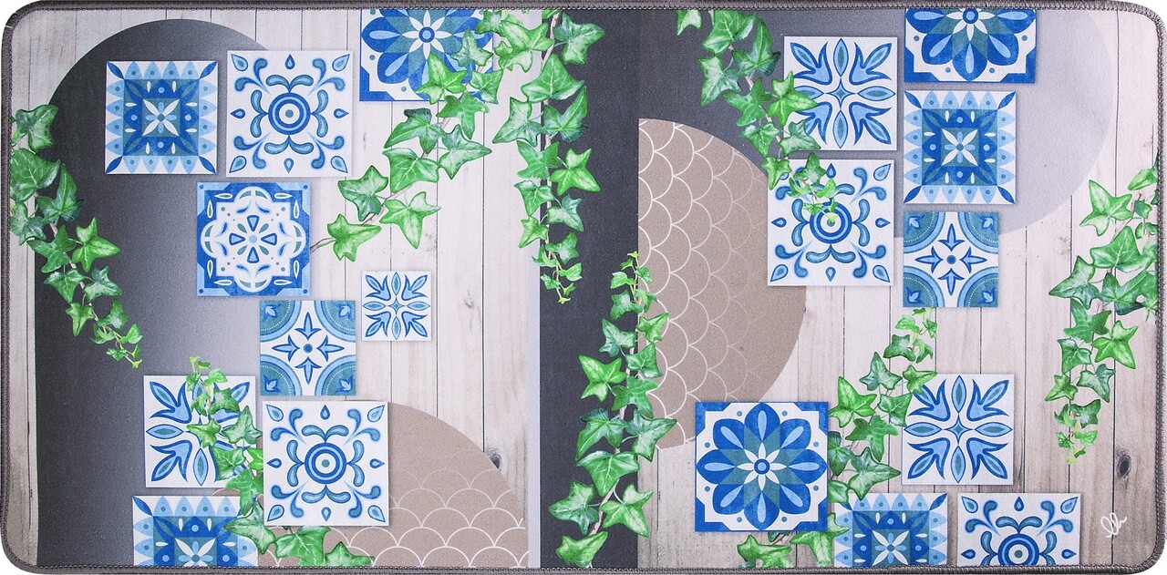 Covor pentru bucatarie, Olivo Tappeti, Miami 3, Blue Flowers, 50 x 100 cm, poliester, multicolor
