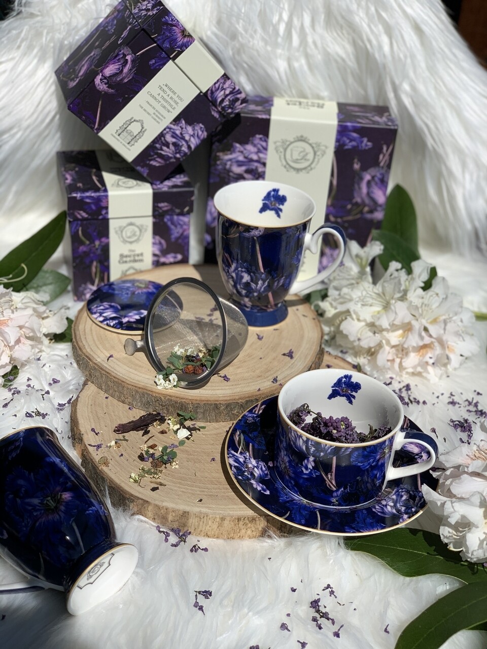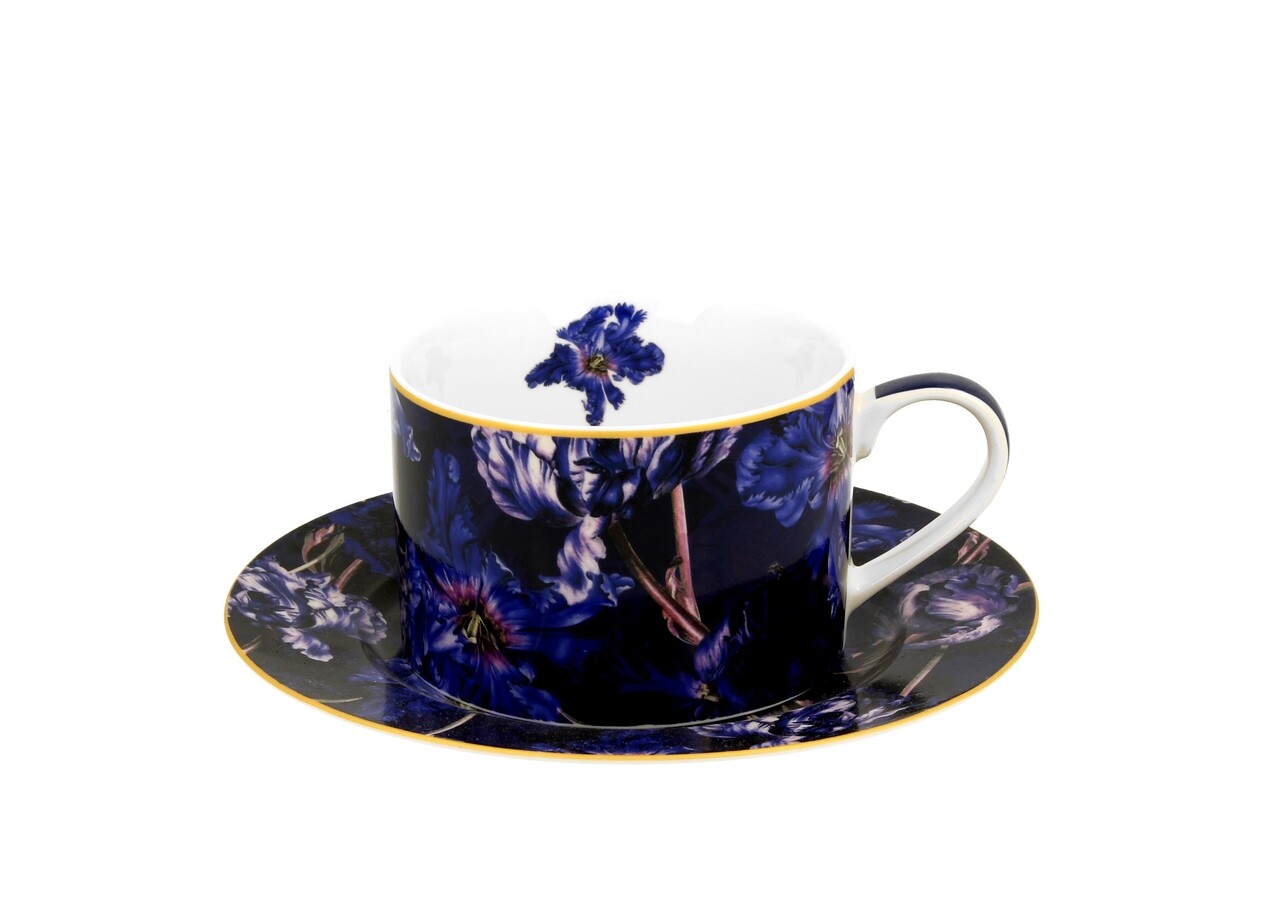 Csésze csészealjjal, DUO, Violet tulipán, 240 ml, porcelán, tarka