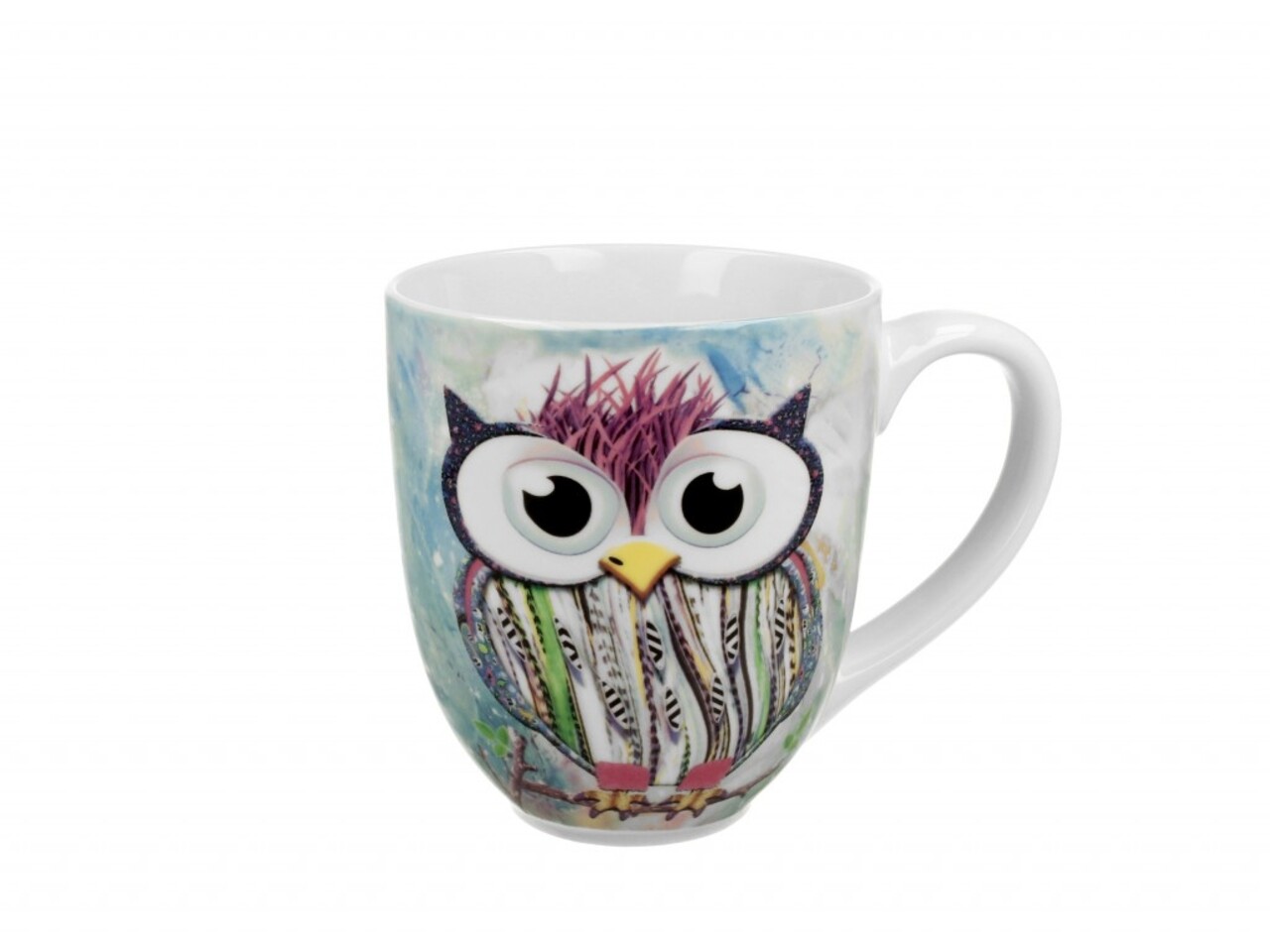 Csésze, Duo, Funky Owl, Jumbo XXL, 0,9 L, porcelán, fekete-fehér