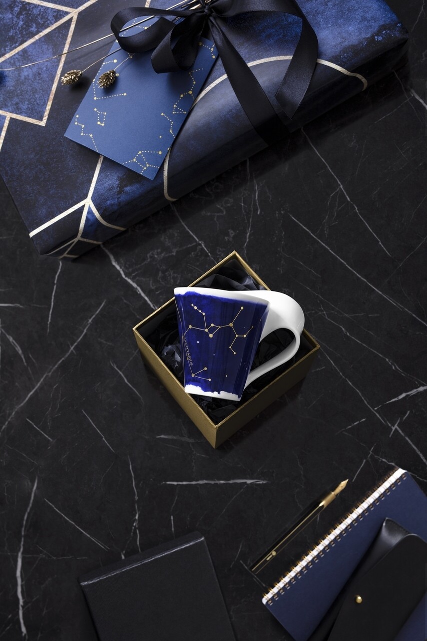 Pentru pasionatii de astrologie, Villeroy & Boch a creat o colectie de cani inspirata din...stele. Pe fiecare obiect in parte este reprezentat cate un semn zodiacal, frumos decorat cu insertii aurii, pe un fundal bleumarin. Datorita designului deosebit colectia a fost premiata, avand in compozitia sa cele mai vandute piese din colectiile New Wave.