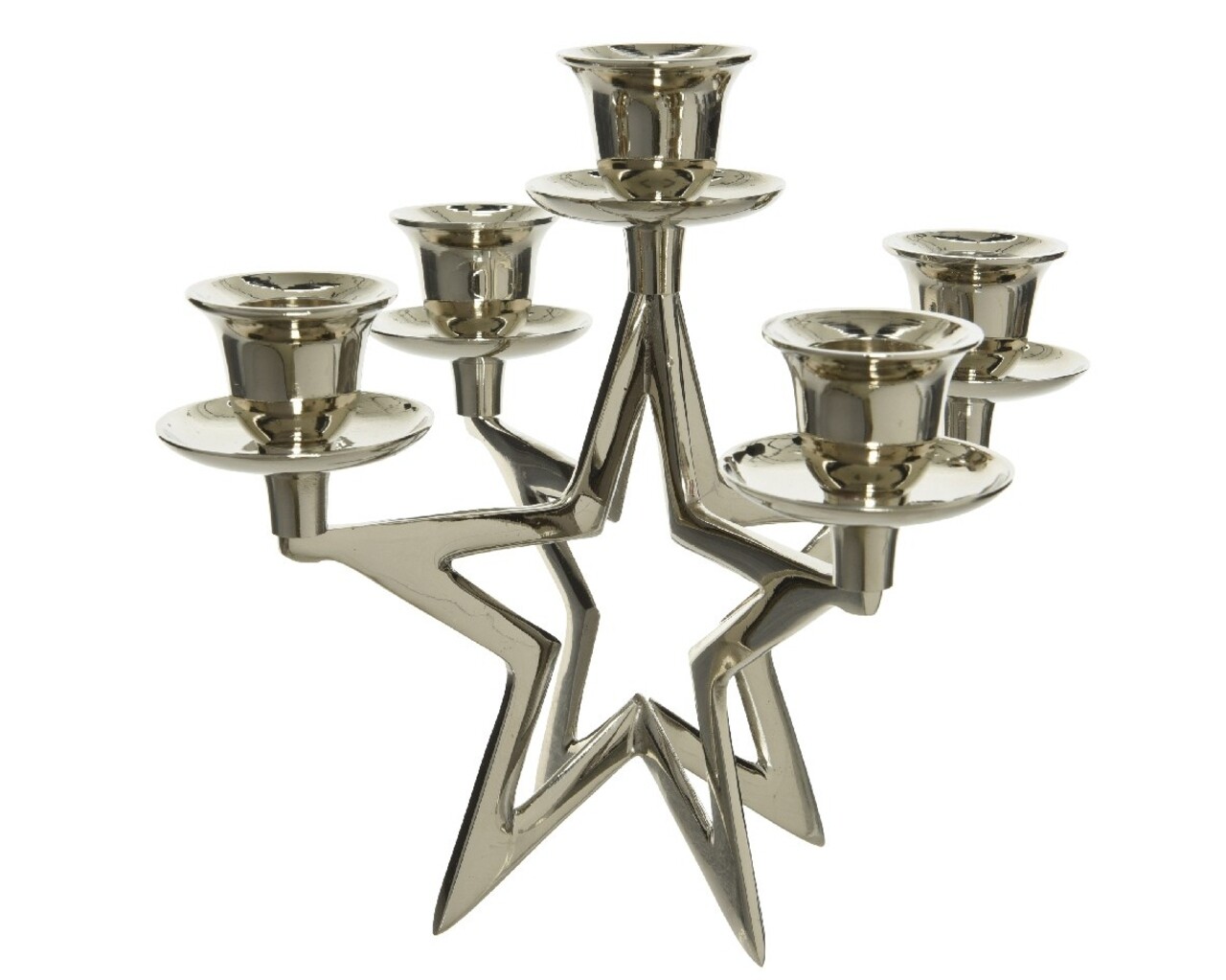 Csillag gyertyatartó, Decoris, 9x18,5x16 cm, sárgaréz, ezüst