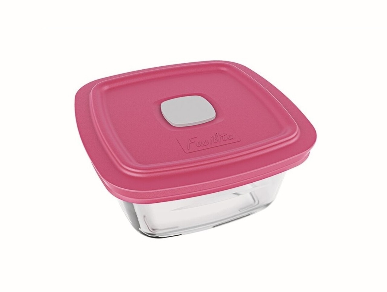 Cutie alimentara cu capac ermetic, Marinex, 1 L, plastic (PP), sticla termorezistenta, roz