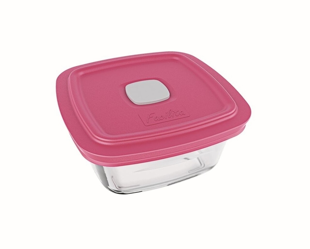 Cutie alimentara cu capac ermetic patrata, Marinex, 500 ml, plastic (PP)/sticla termorezistenta, roz