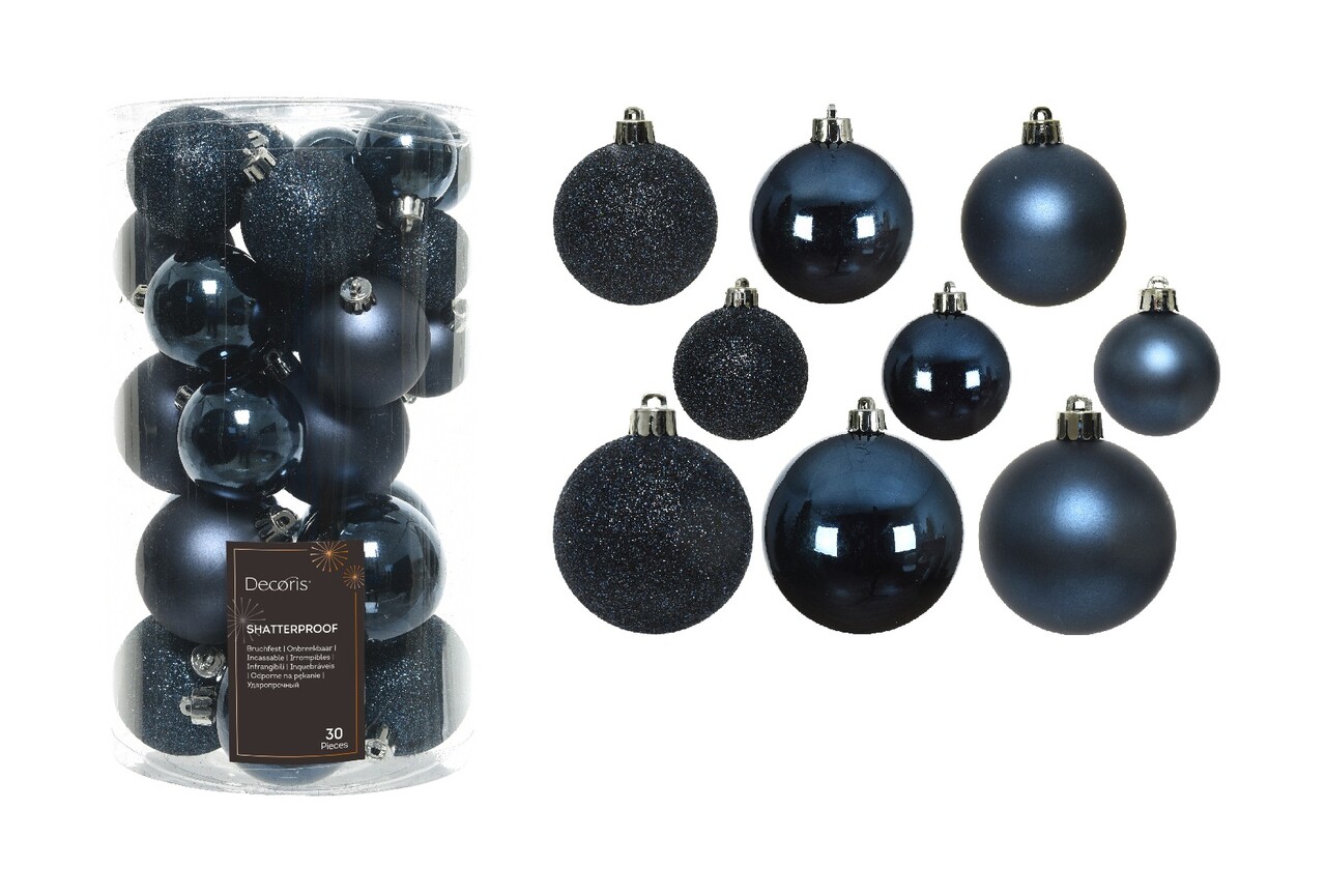 Cutie cu 30 globuri asortate Nachtblauw Mix, Decoris, műanyag, kék