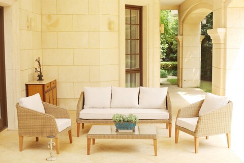 Debby Háromszemélyes kanapé, 2 db fotel és asztalka, acél, természetes/krémszín