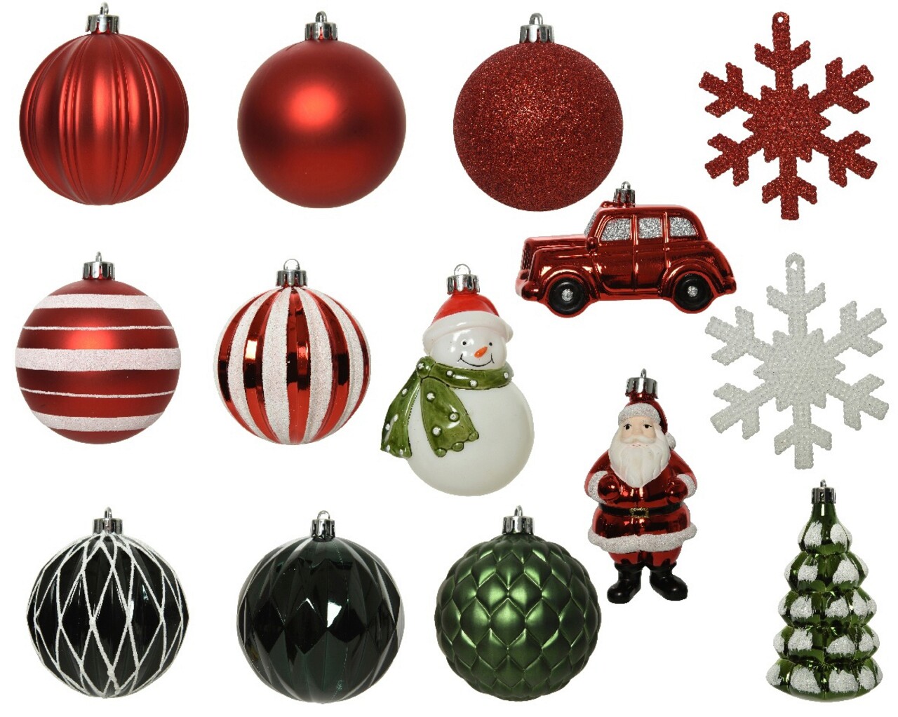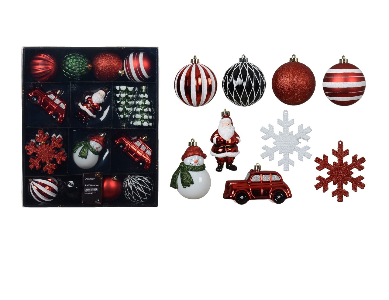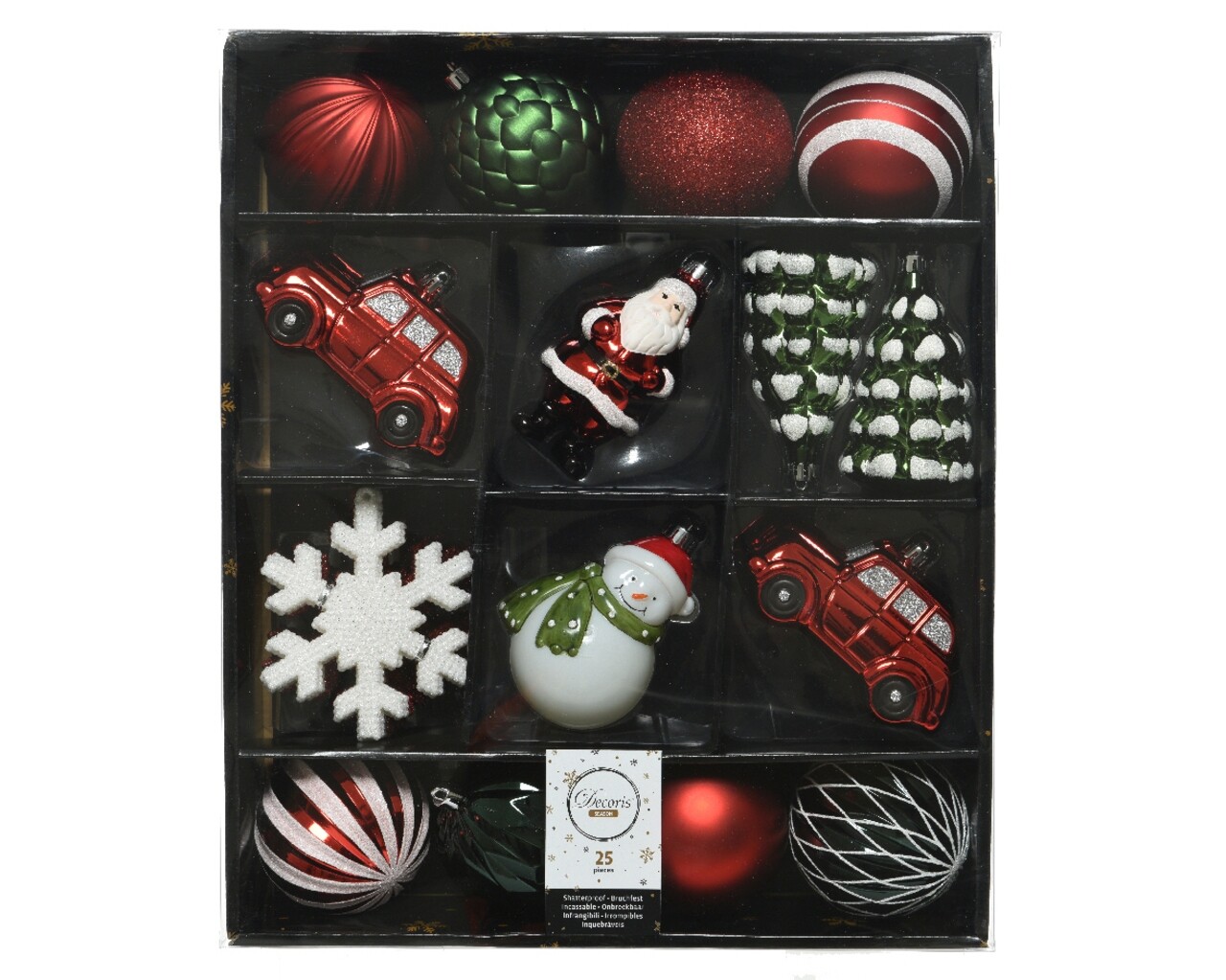 Decoris 25 db Díszgömb, műanyag, piros/zöld/fehér
