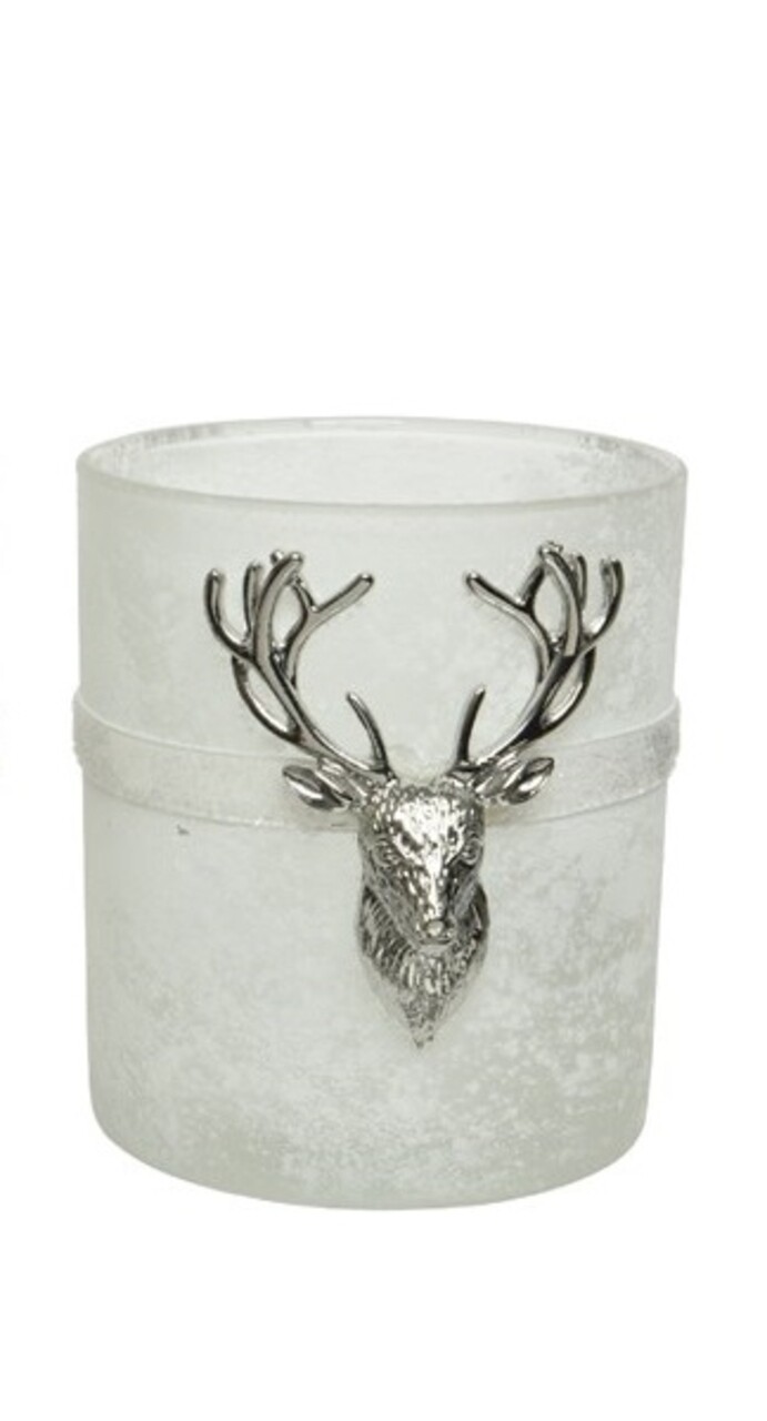 Deer White gyertyatartó, Decoris, 12,5x10x18 cm, üveg, ezüst / fehér
