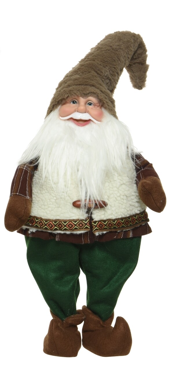 Dekoráció Gnome w hat brown, Díszek, 30x15x85 cm, poliészter, fehér / barna / zöld