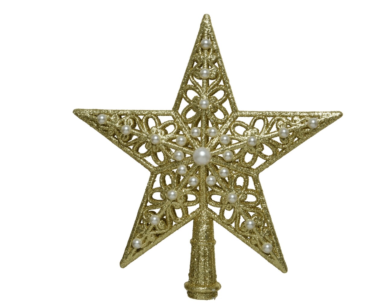 Dekoratív tipp fenyő csillag gyöngyhöz, Decoris, 3,8x20x21 cm, műanyag, arany