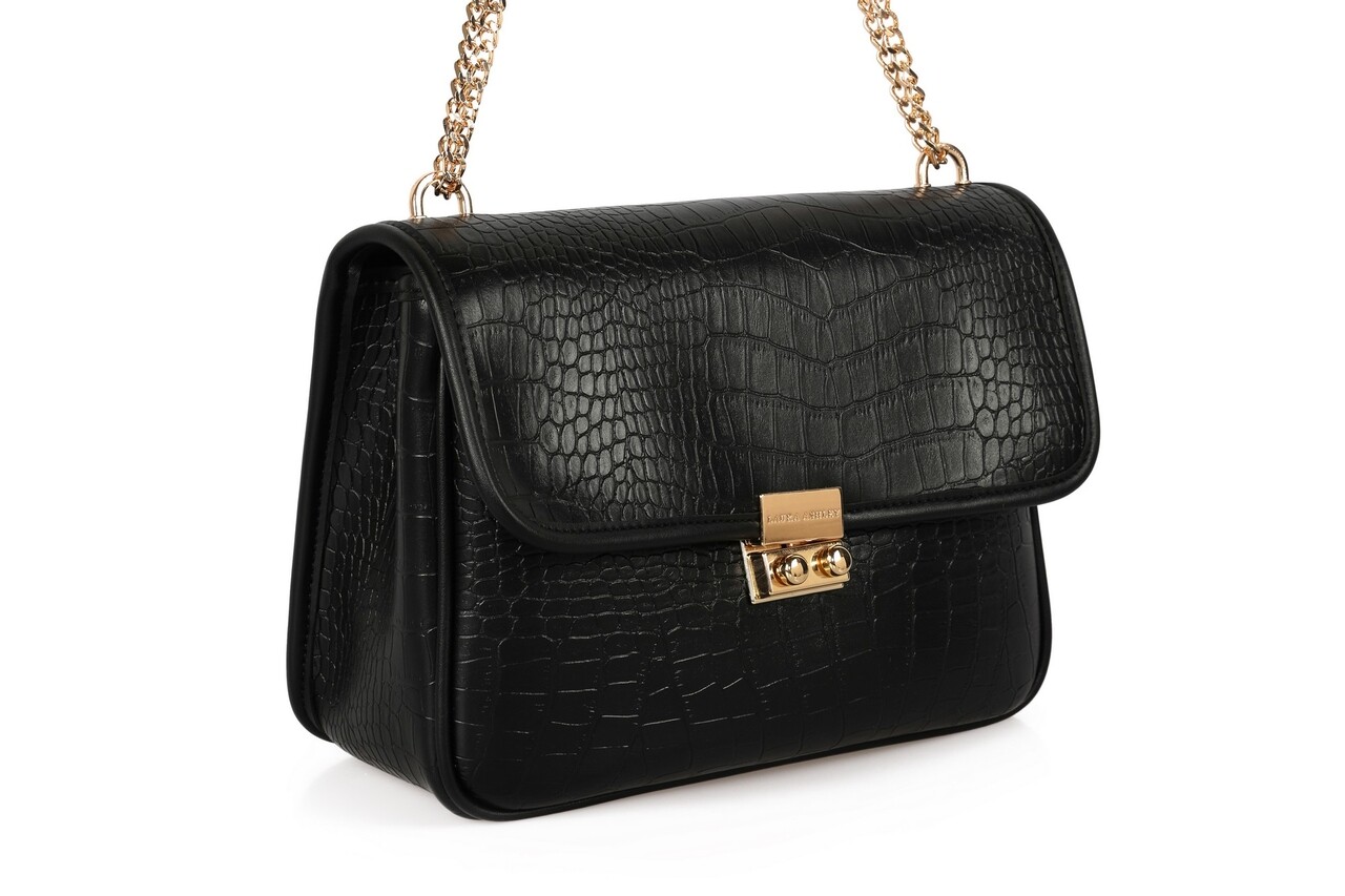 Devonia táska - Croco, Laura Ashley, ökológiai bőr, fekete