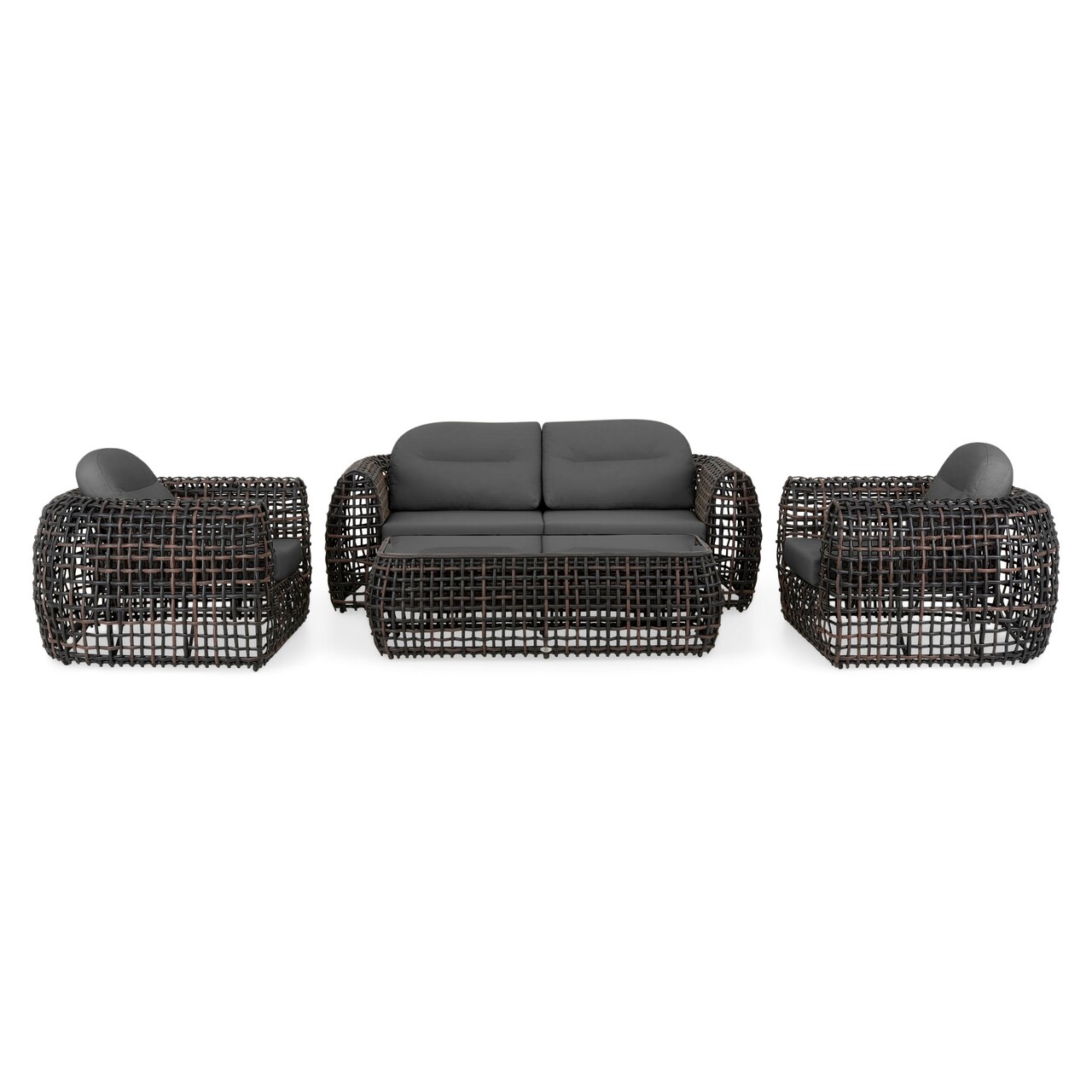 Dinasty 2 db Fotel, kanapé és asztalka, alumínium, fekete/szürke