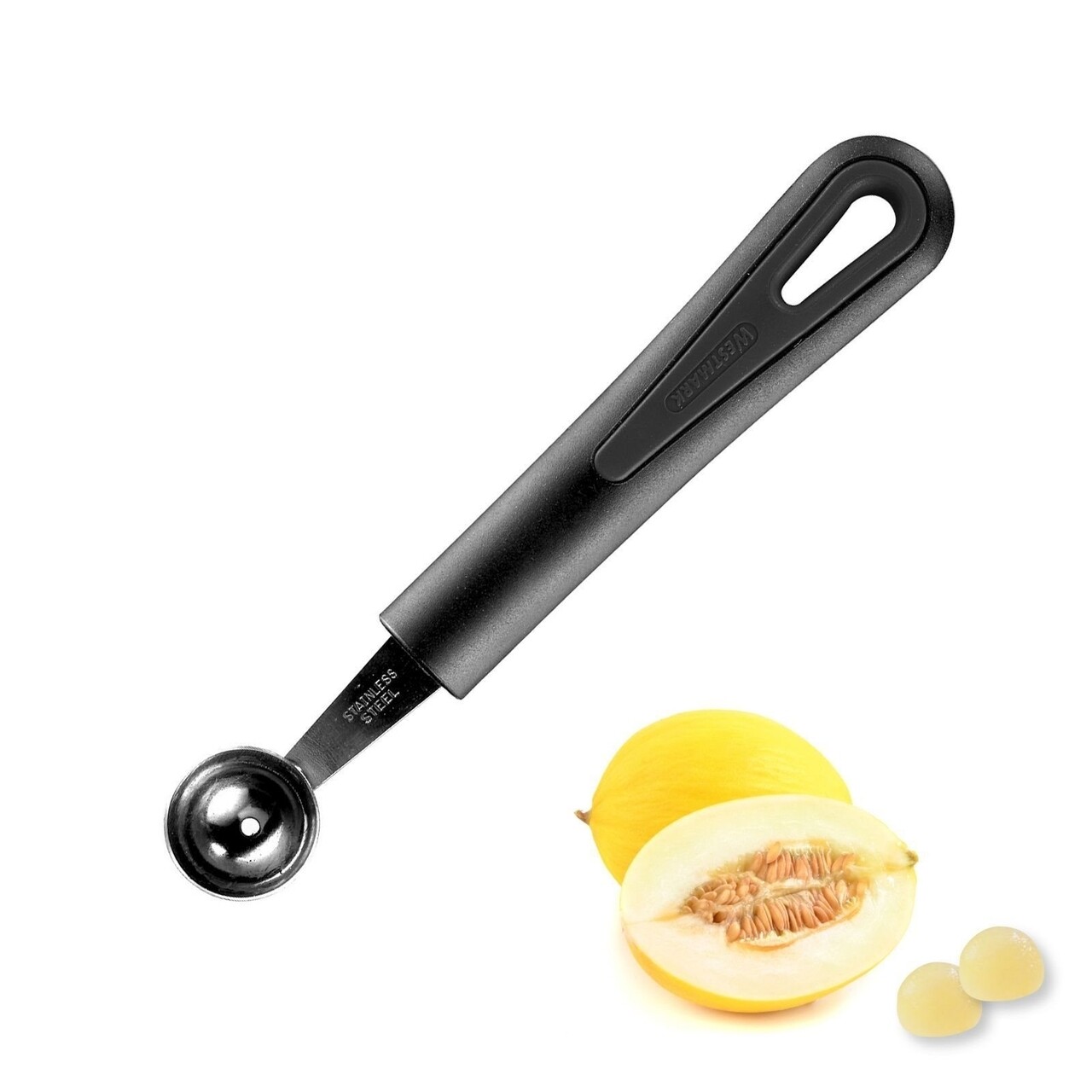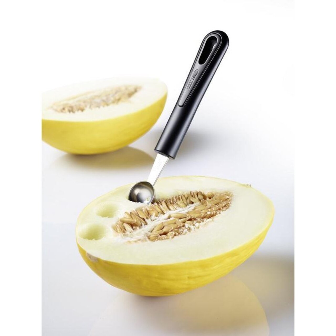 A csésze széle elég éles ahhoz, hogy tökéletes gyümölcs-, zöldség- vagy vajgolyókat formázzon.