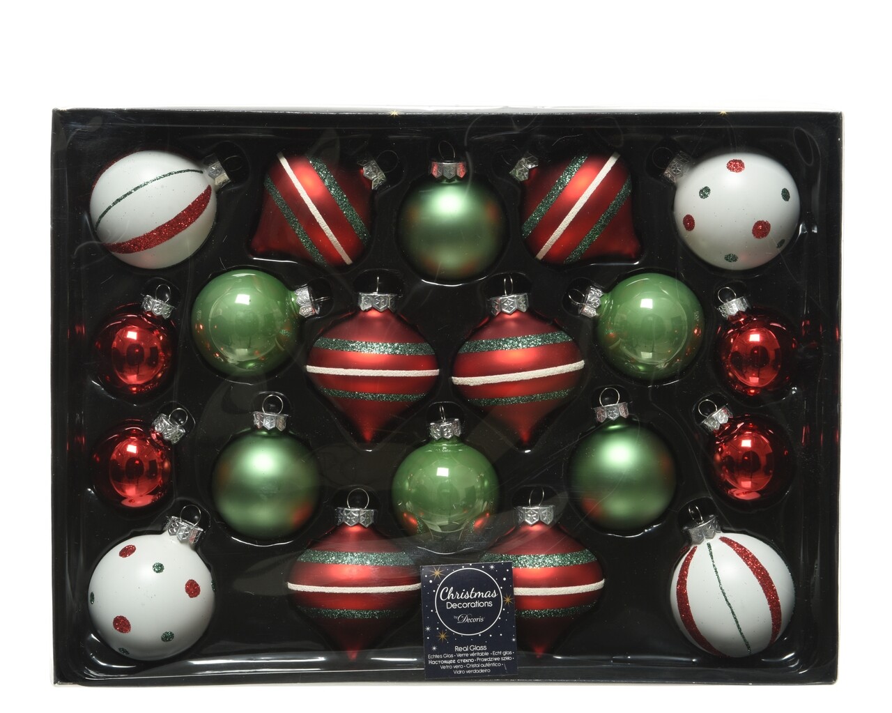 Doboz 20 vegyes gömbök Baubles mix, Decoris, üveg, ezüst / zöld