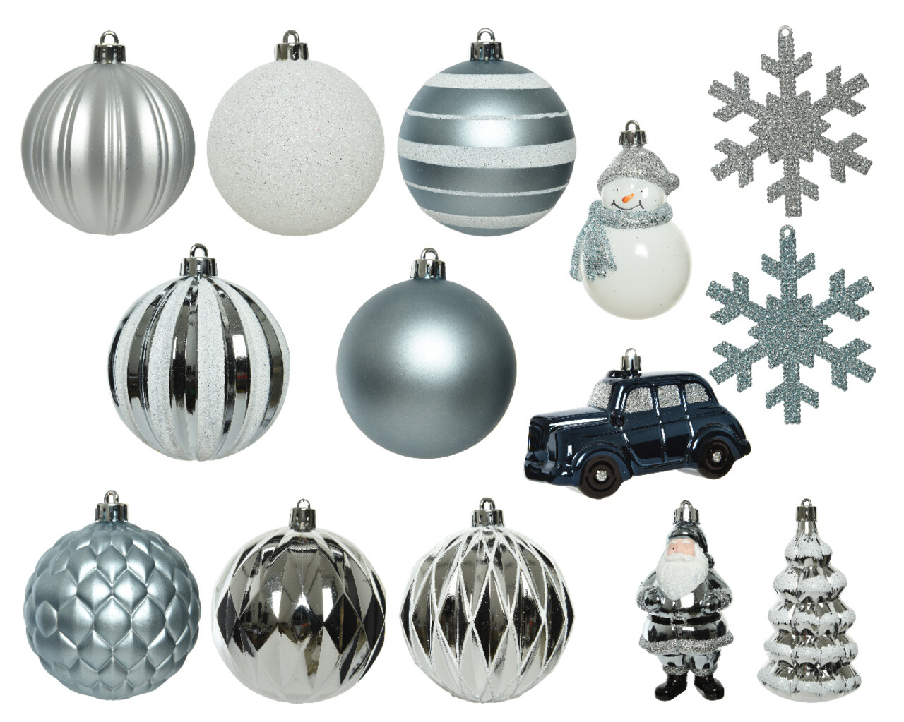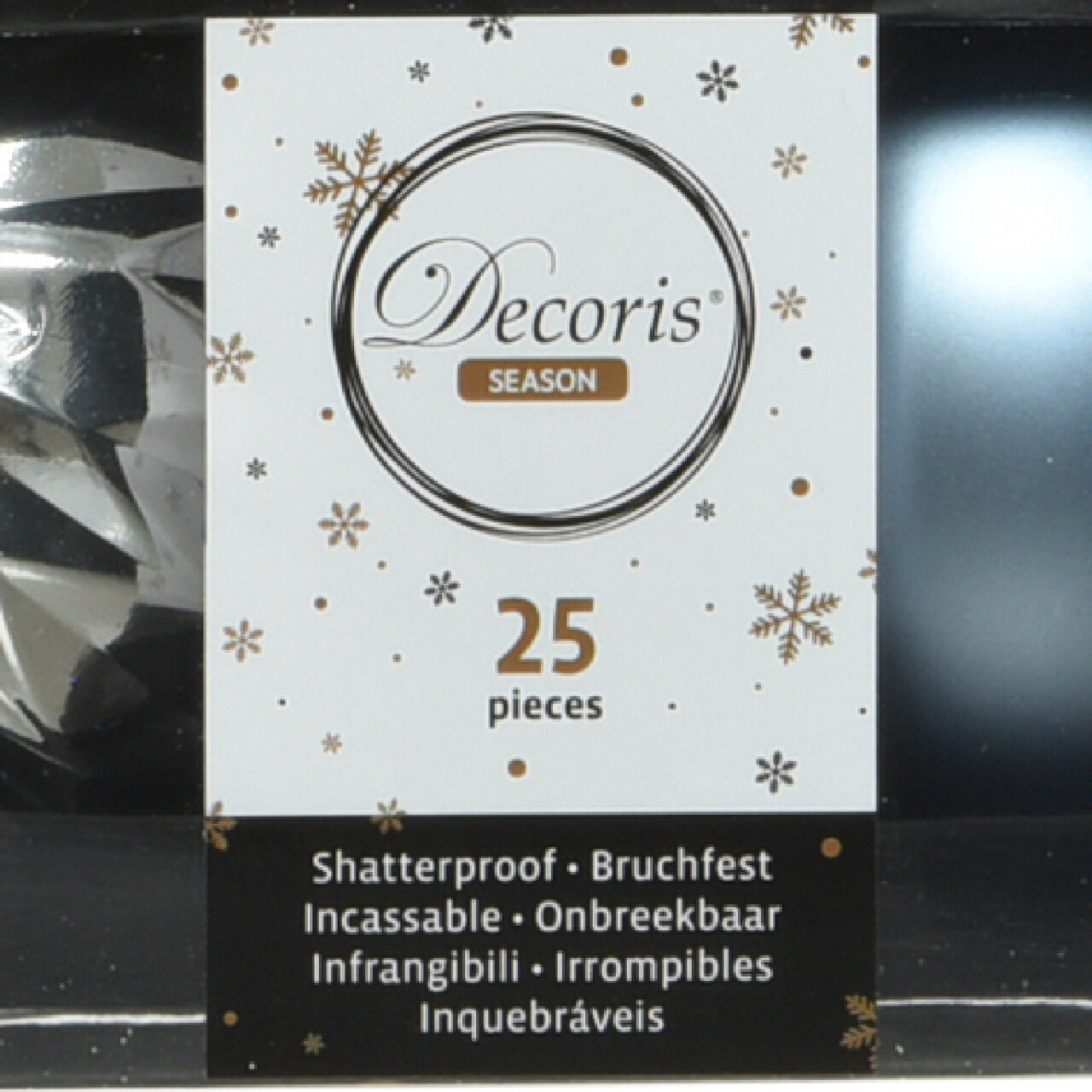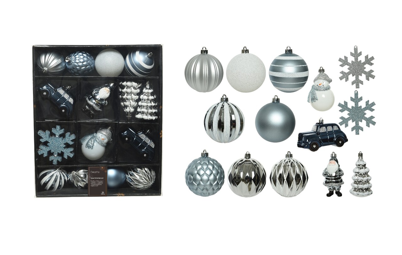 Doboz 25 válogatott gömbbel Téli keverék, Decoris, műanyag, kék/fehér