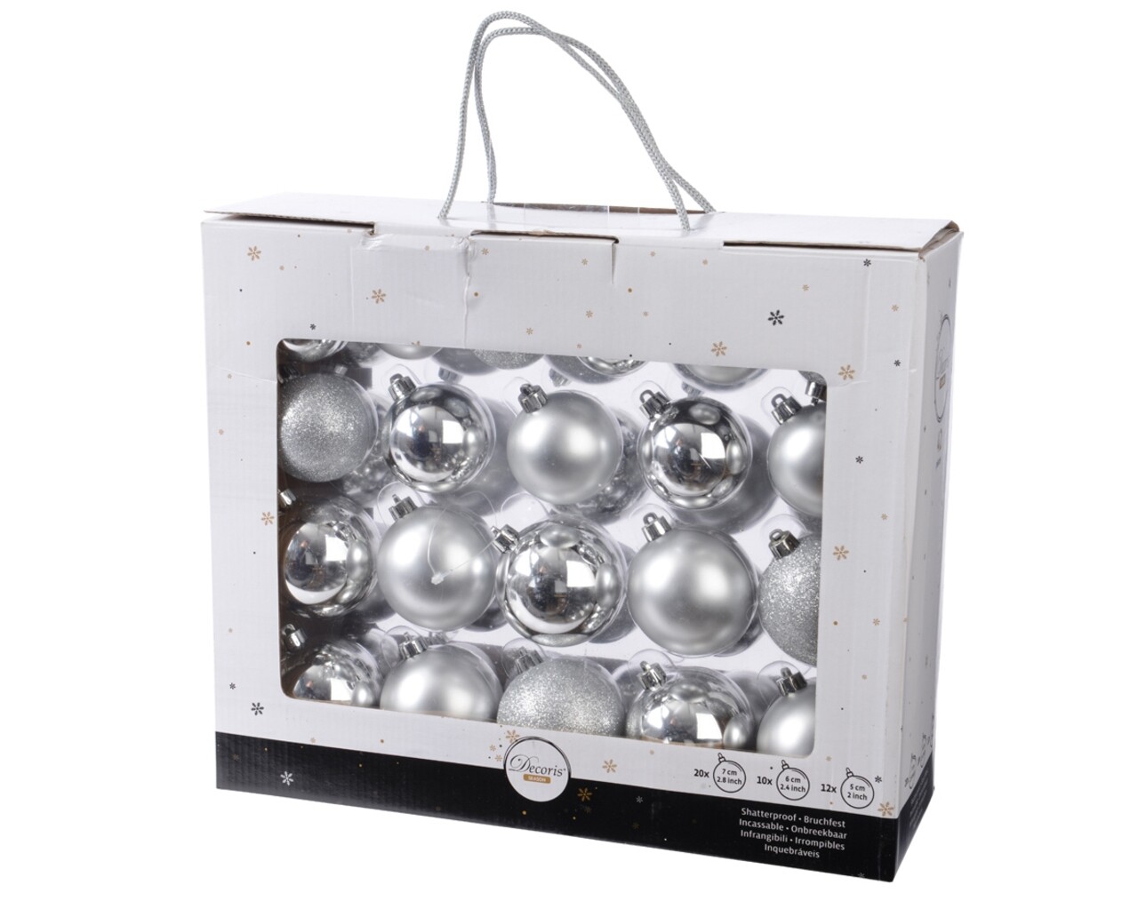 Doboz 42 golyóval Ezüst, Decoris, műanyag, ezüst
