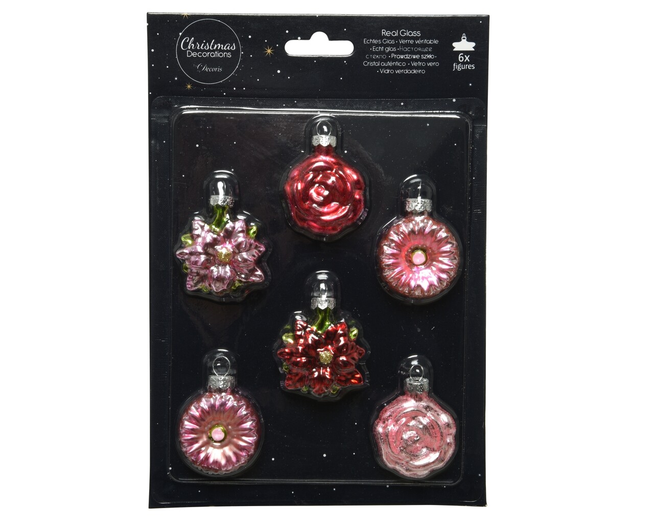 Doboz 6 válogatott gömbökkel Virágkarácsony, Díszített, üveg, sokszínű