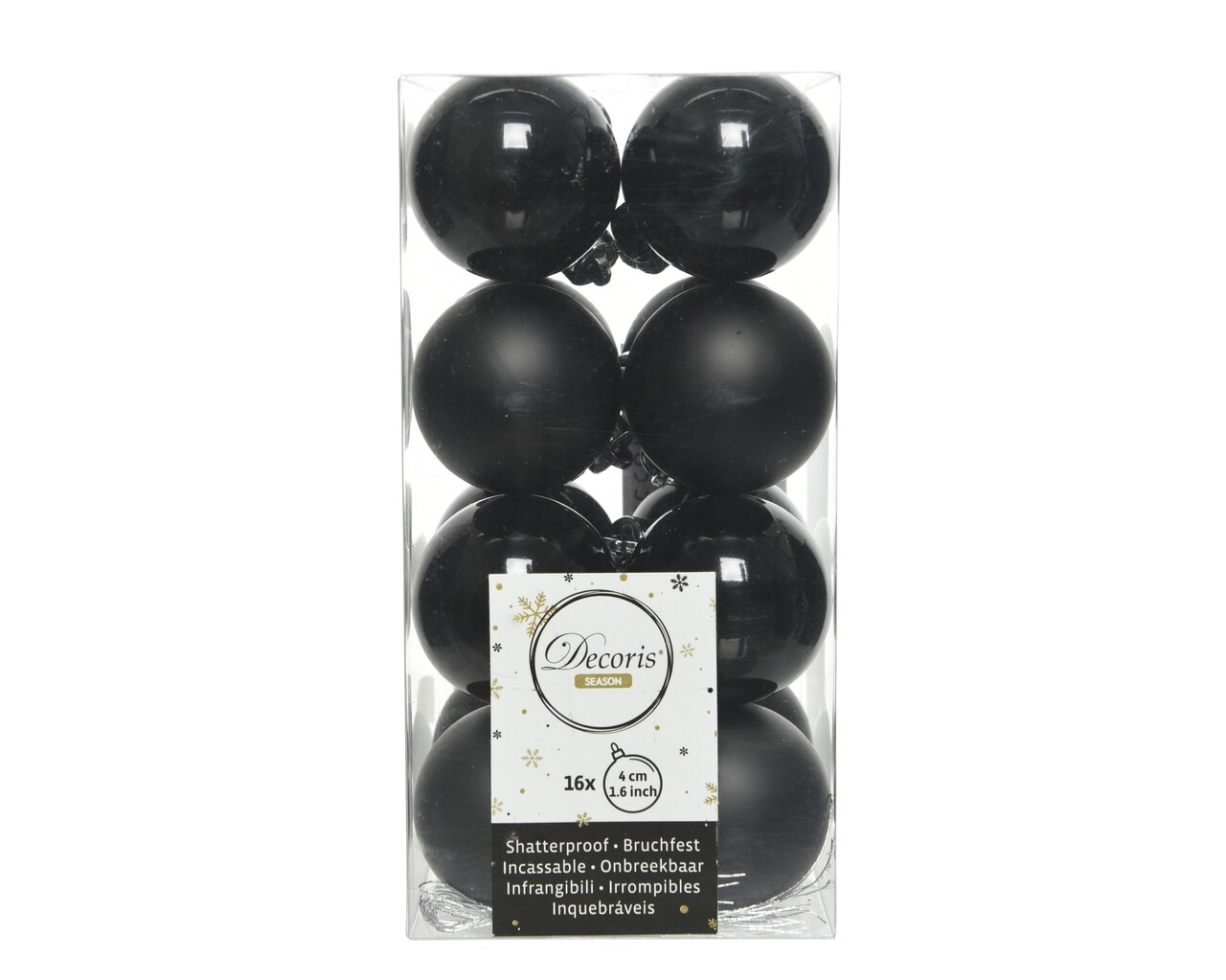 Dobozban 16 vegyes gömb Fekete keverék, Decoris, Ø4 cm, műanyag, fekete