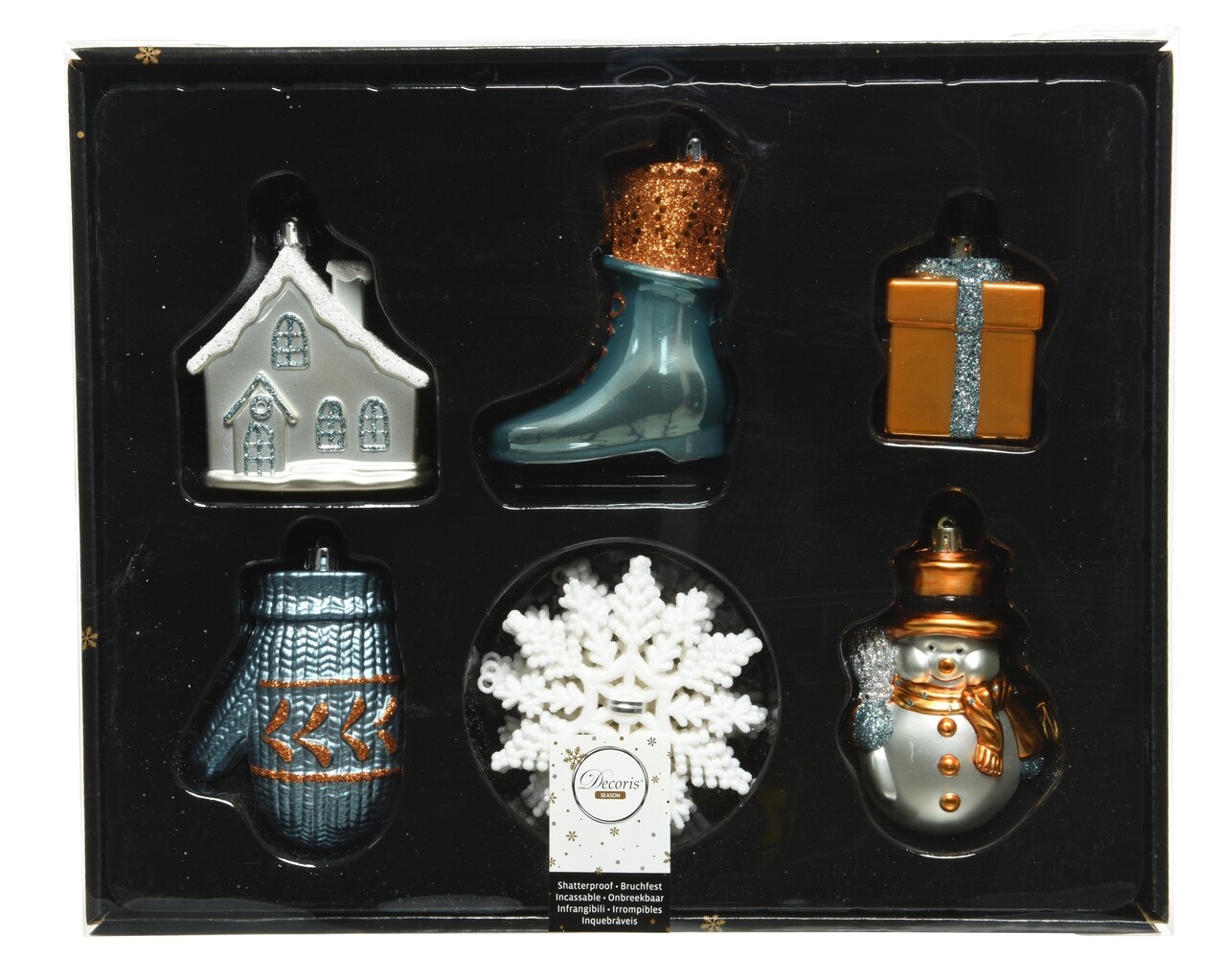 Dobozban 20 jég karácsonyi gömb, díszített, műanyag, sokszínű