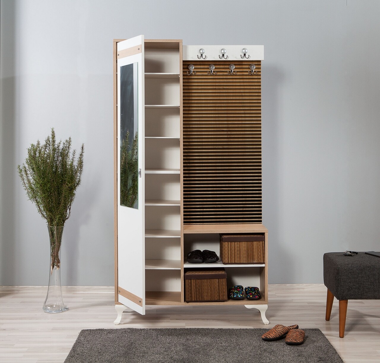 Dulap cu pantofar, cuier si oglinda Inci 220, Vella, 100x36x196 cm, multicolor
