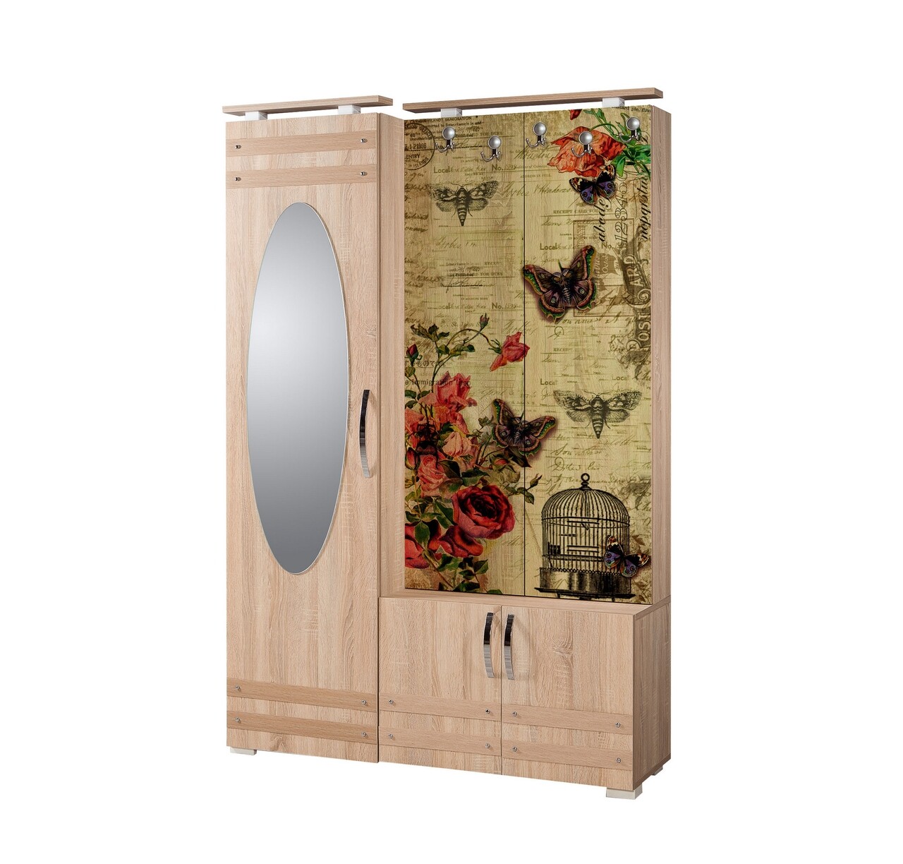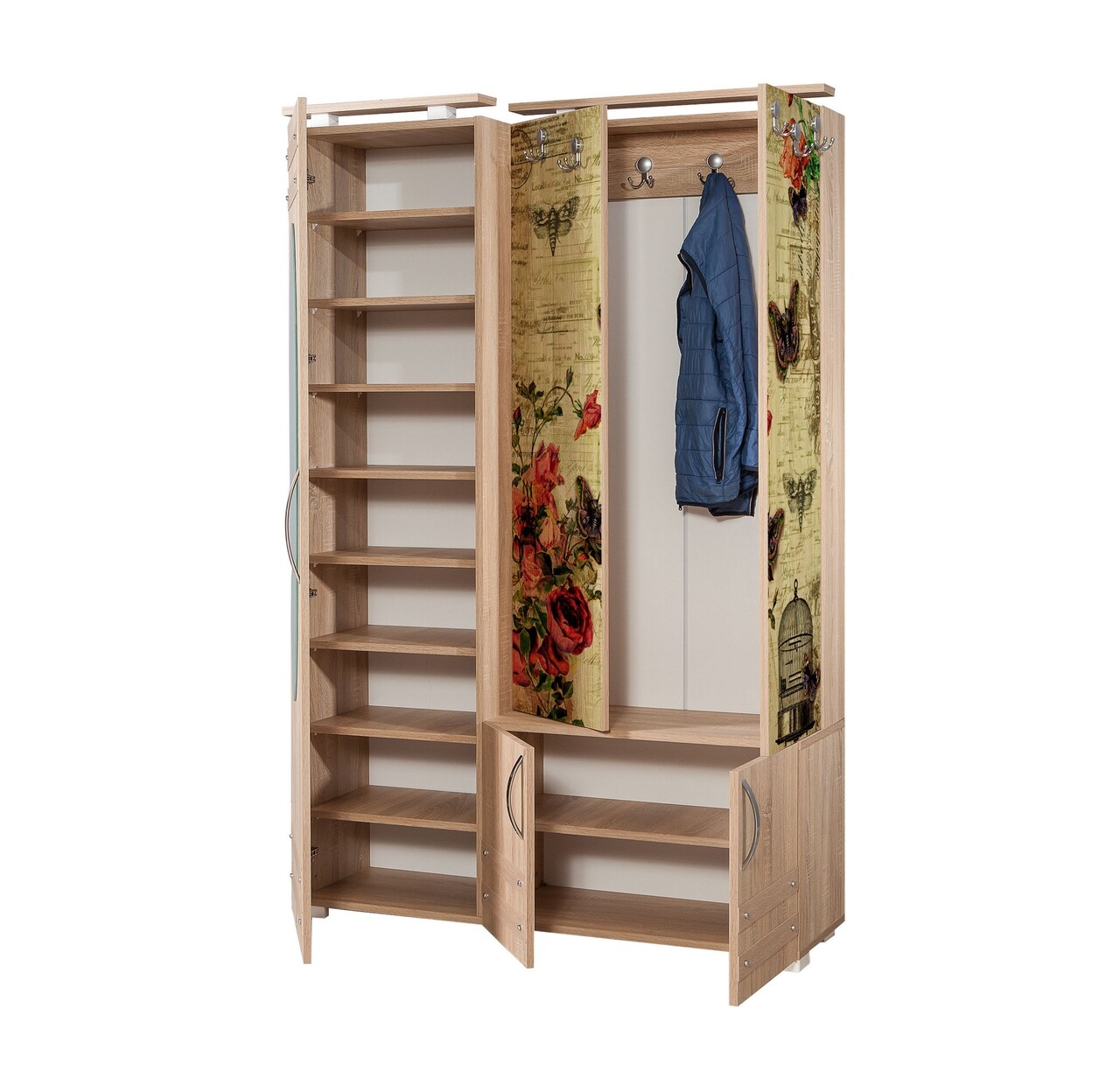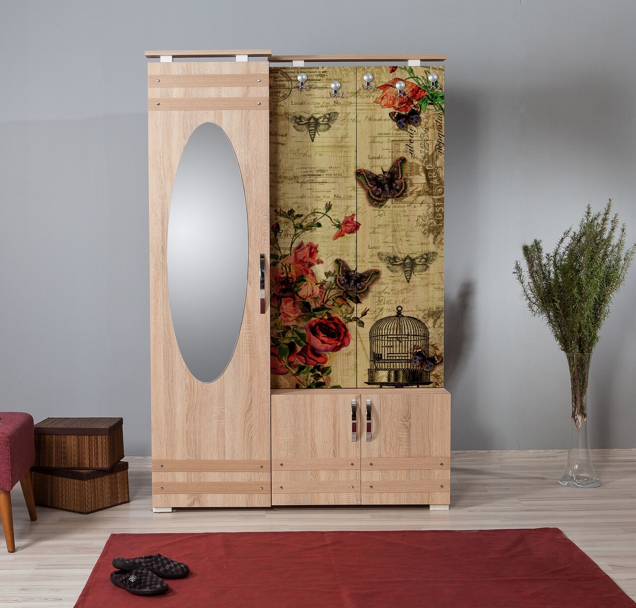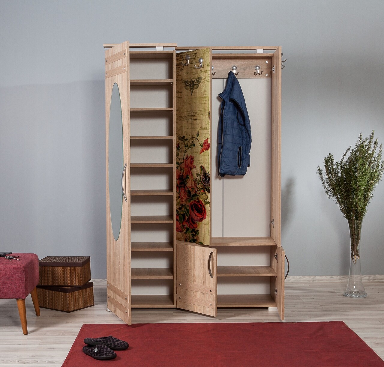 Dulap cu pantofar, cuier si oglinda Sihirli 734, Vella, 100x36x196 cm, multicolor