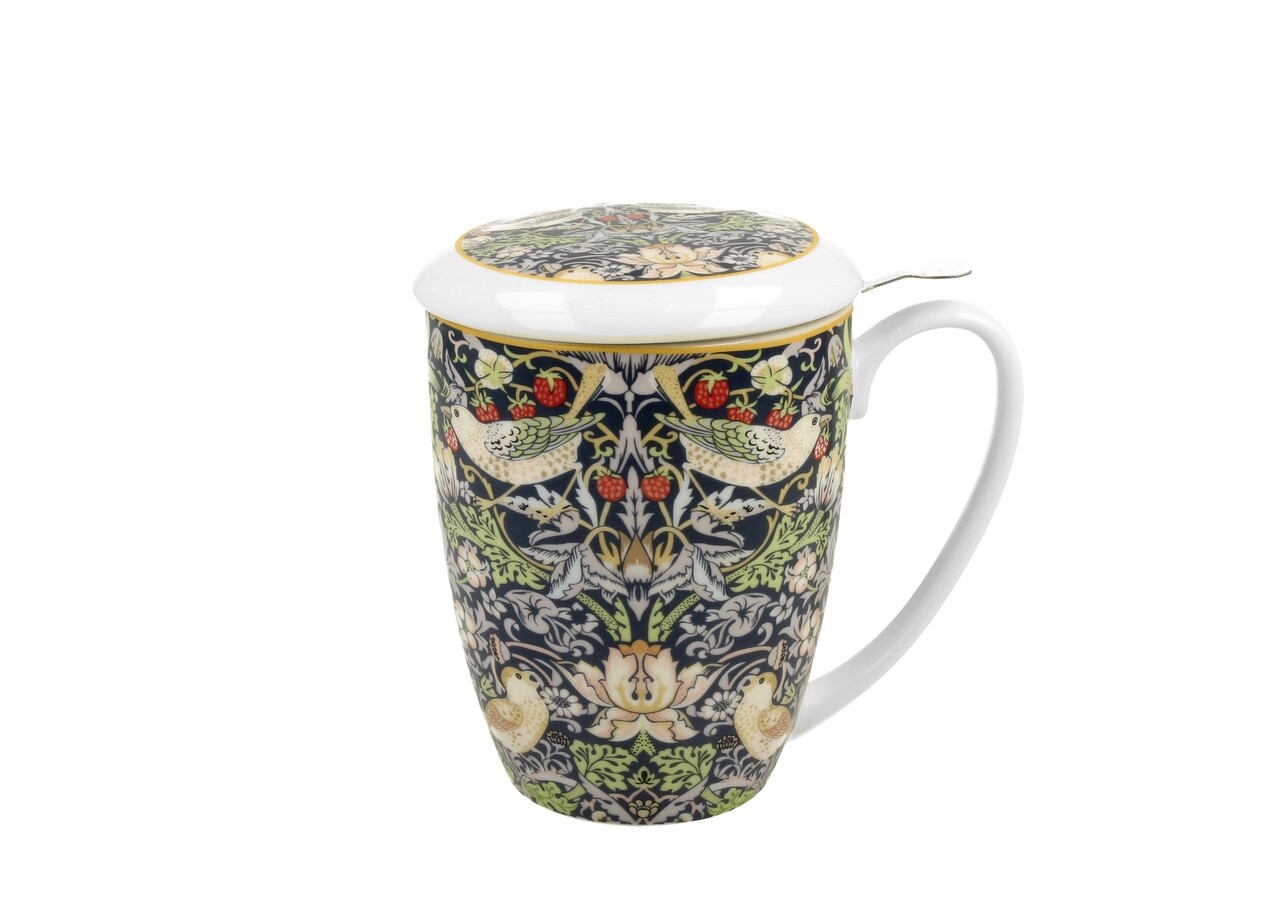DUO, William Morris Csésze szűrővel - Strawberry Thief Blue, 380 ml, porcelán, többszínű