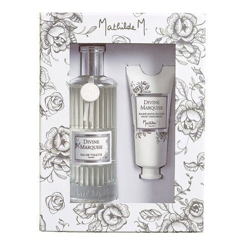 Eau de toilette ajándék szett + kézbalzsam, isteni márki, praliné / borostyán / pacsuli