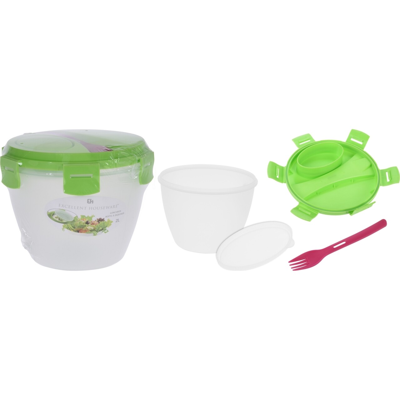 A doboz alkalmas ebédre, ha távol van, iskolában vagy az irodában. Kapoccsákkal ellátott fedele van, amely hosszú ideig frissen tartja az ételeket, valamint egy speciális tartály salátaöntet és villa tárolására.