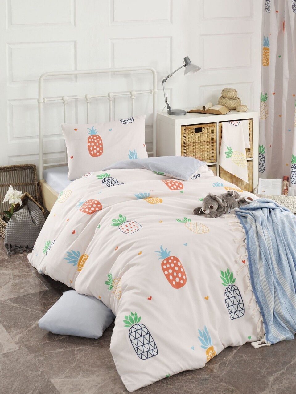 Egyszemélyes Joke Ananász ágyneműgarnitúra, EnLora Home, 3 részes, pamutkeverék, krém