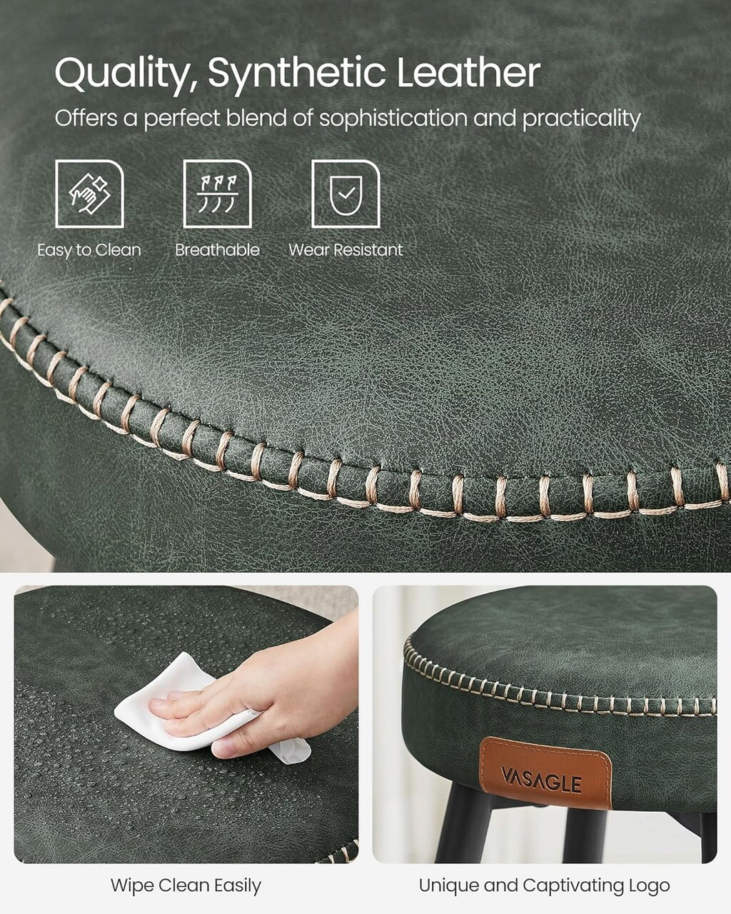 Ekho 2 db Bárszék, Vasagle, 51.6 x 51.6 x 75 cm, acél/öko-bőr, zöld