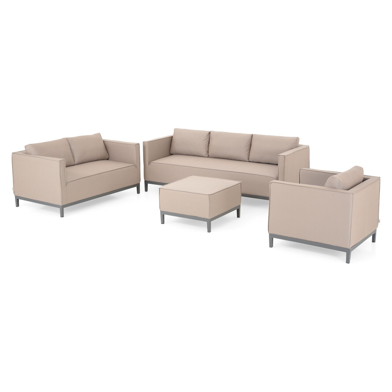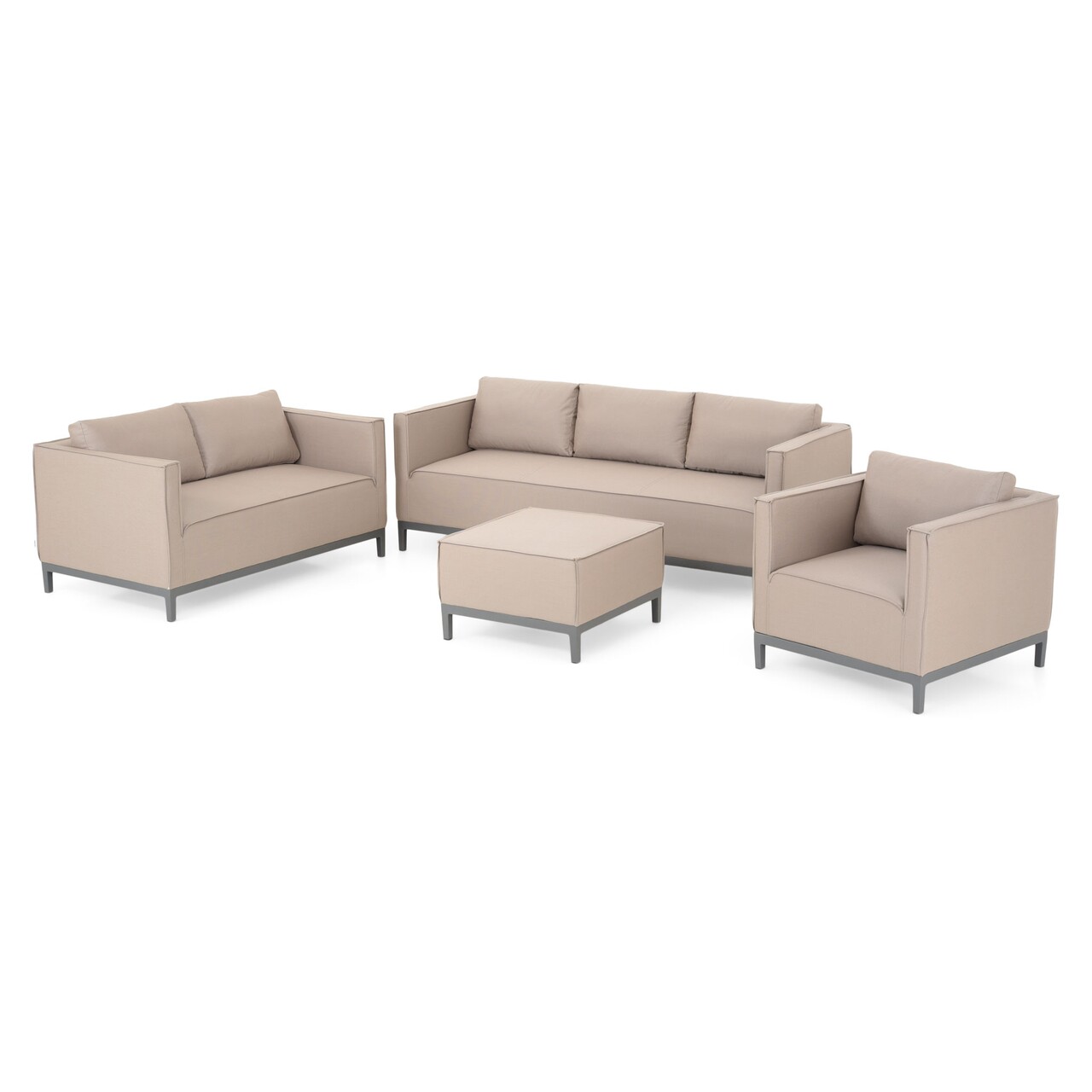 Eon Háromszemélyes kanapé, kétszemélyes kanapé, fotel és zsámoly, alumínium, fekete/szürke