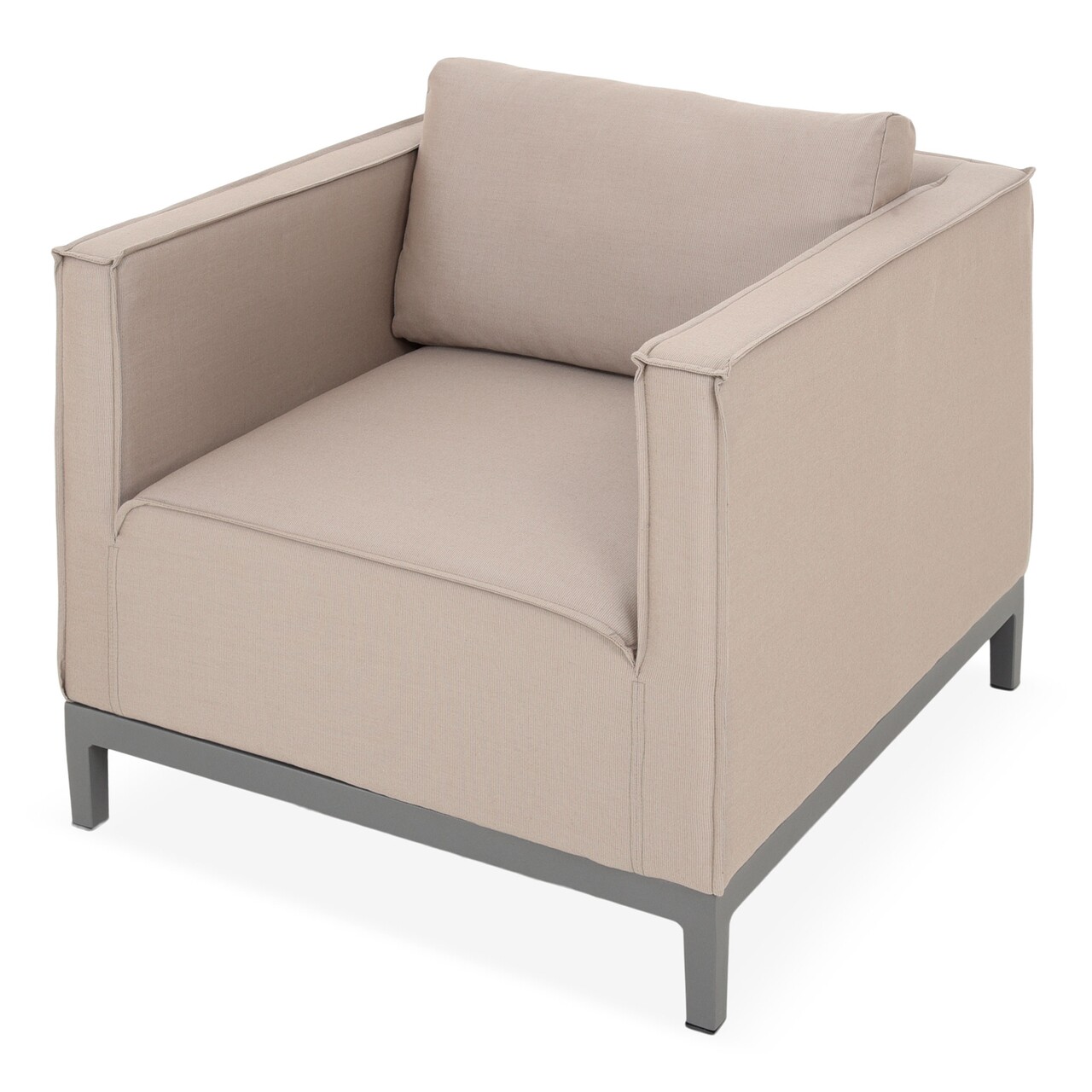 Tömör alumíniumszerkezetből készült, elektrosztatikusan festett. Az ülés és a háttámla nagy sűrűségű poliuretánból készült, vízálló @Sunbrella anyaggal borítva, 5 év garantált fakulás elleni védelemmel.