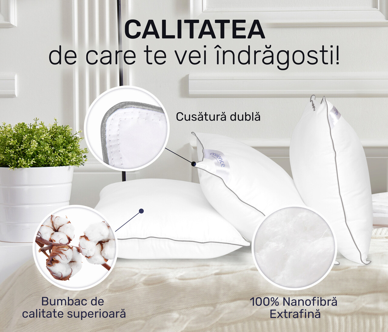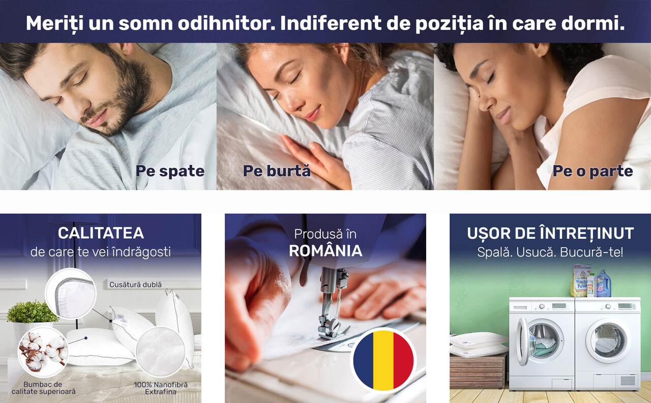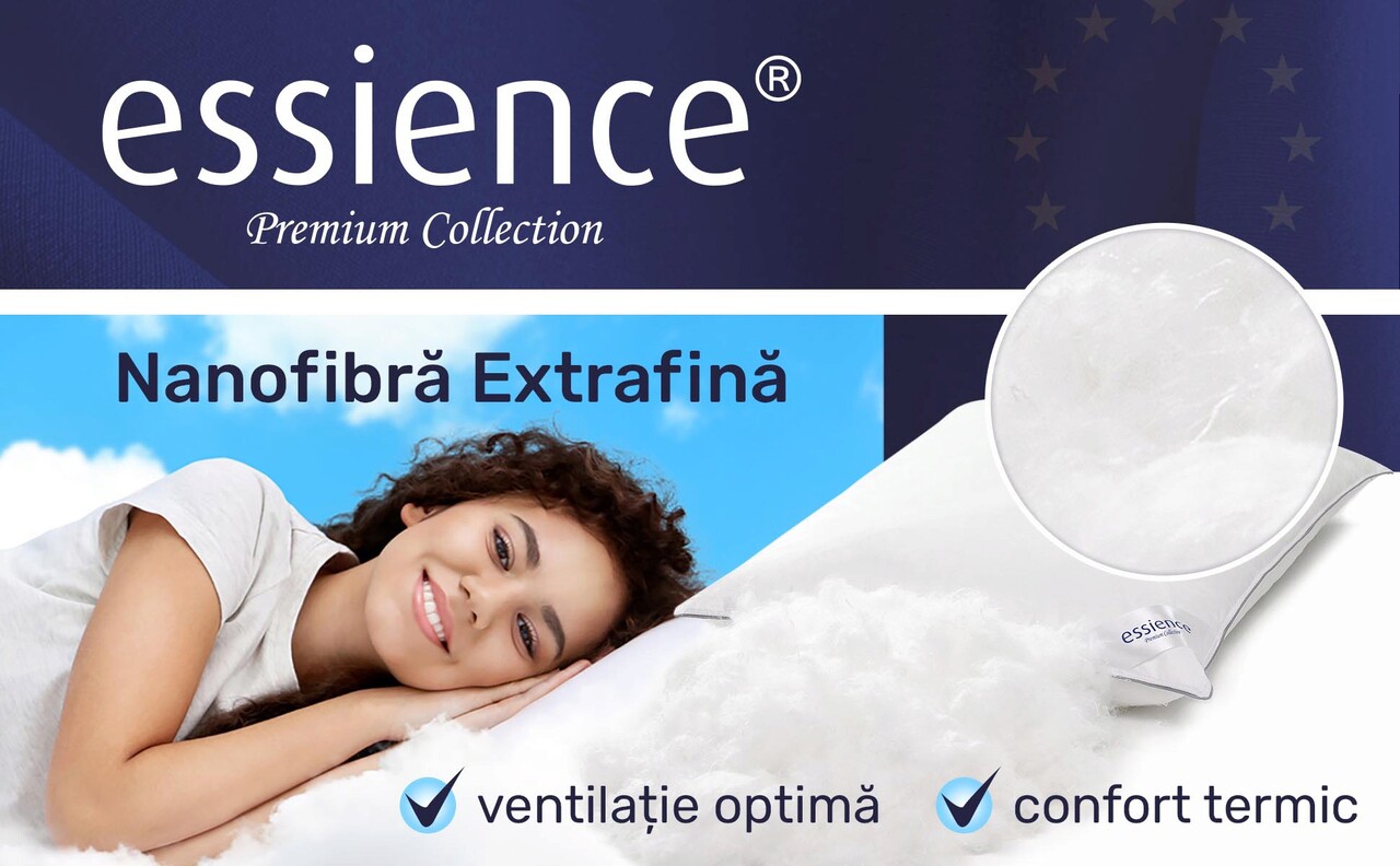 ROMÁNIAI KÉSZÍTÉS: A Nanofiber Essience Premium Collection párnákat Romániában tervezik és gyártják, kiváló minőségű anyagok felhasználásával, a legjobb alvásélmény biztosítása érdekében.