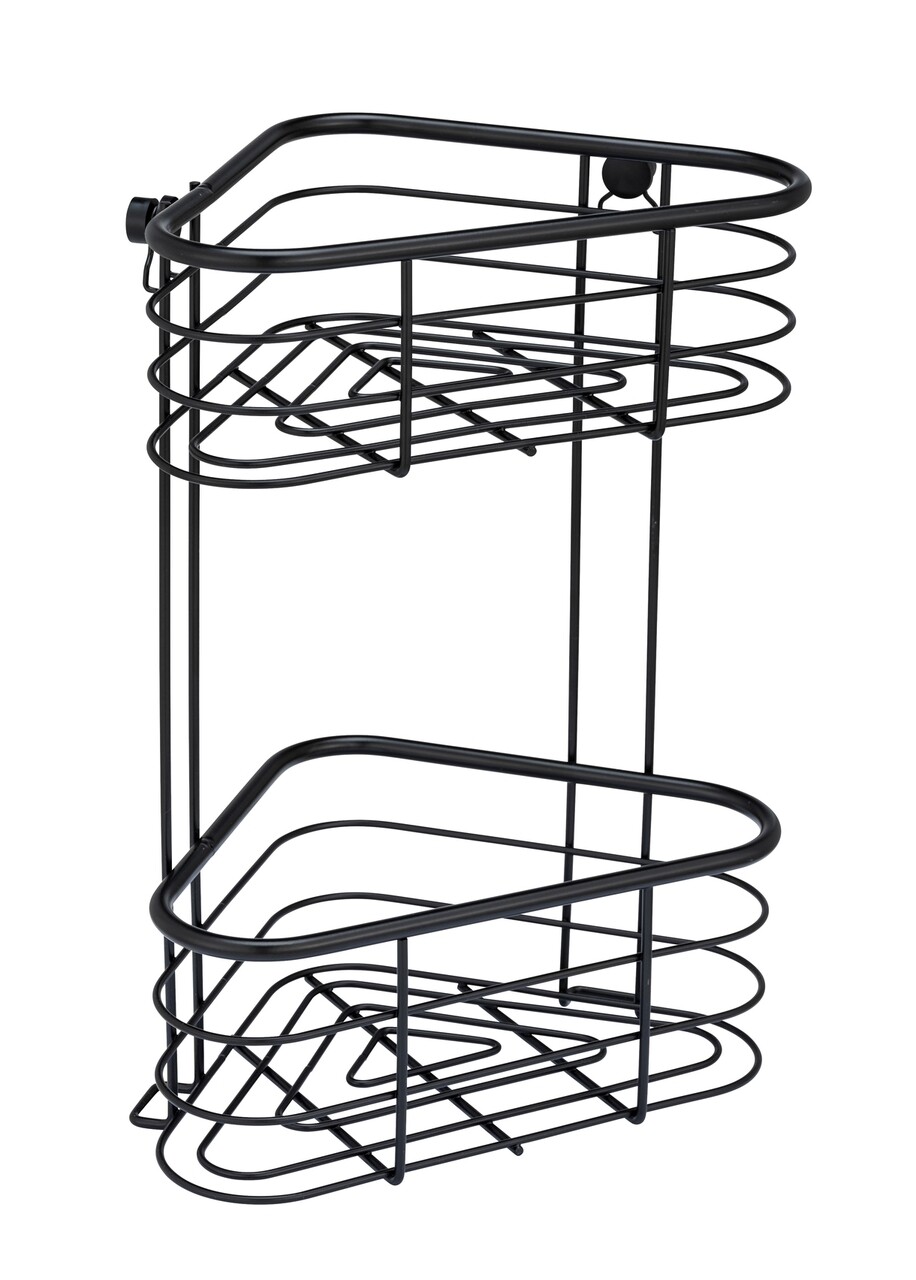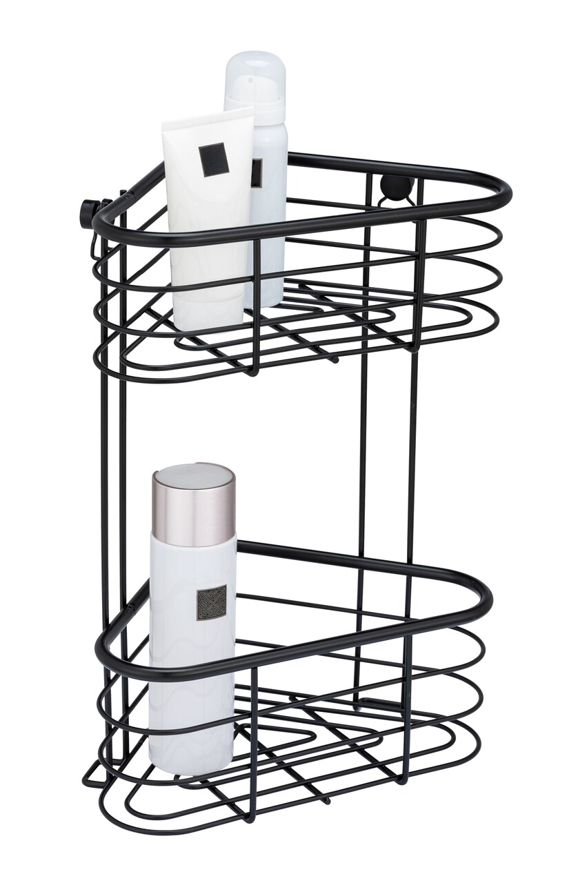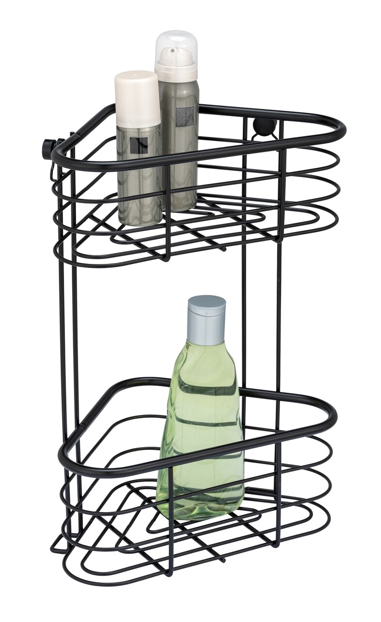 Etajera de colt pentru baie, Wenko, Trestina, 25 x 35 x 16.5 cm, inox, negru