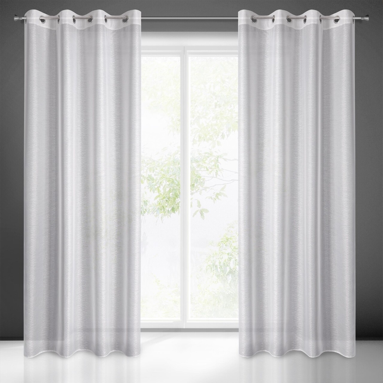 Szeretné finom ragyogással megvilágítani a belső teret? A szürke finom árnyalatú, ezüst szállal szőtt Arlona függöny tökéletes ajánlat a modern és világos belső terekhez. Az ezüst függöny, átlátszó és szellős, praktikus gyűrűkkel van felszerelve, amelyek biztosítják a gyors és egyszerű cserét.