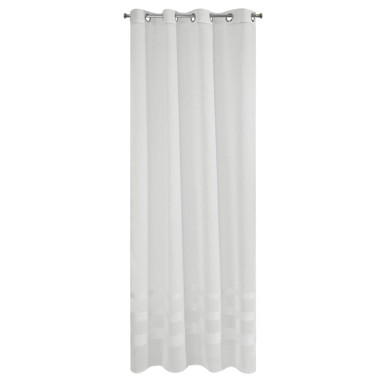 Világos, matt etaminfüggöny, alul három fényes csíkkal díszítve, mohair szál hozzáadásával. A függöny ötvözi az elegáns glamour stílust az alkalmi eleganciával. Integrálhatja mind az elegáns belső térbe, mind a klasszikus stílusban díszített belső térbe.