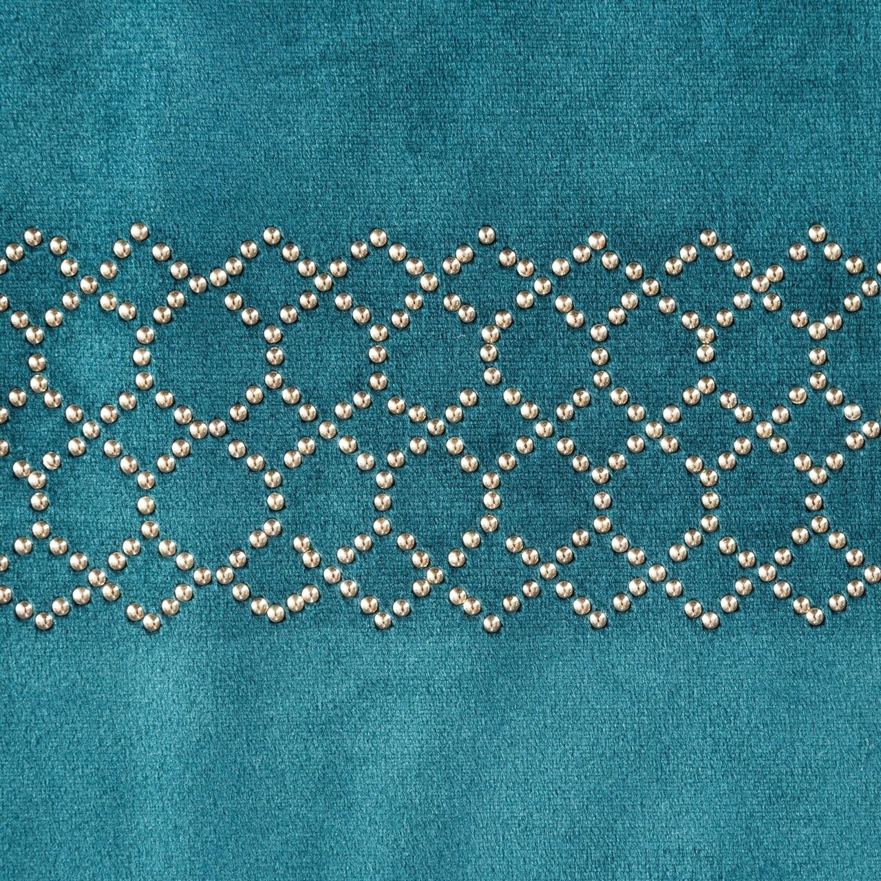 A függöny puha bársonyszövetből készült, felül díszítve egy kis, fényes, világos arany strasszos öv formájában, geometriai mintában elrendezve. A matt puha szövet jól eltakarja az ablakot, kényelmes légkört biztosítva belül. Ez a vonzó függöny biztosan elnyeri az elegáns dekorációk szerelmeseinek szimpátiáját.