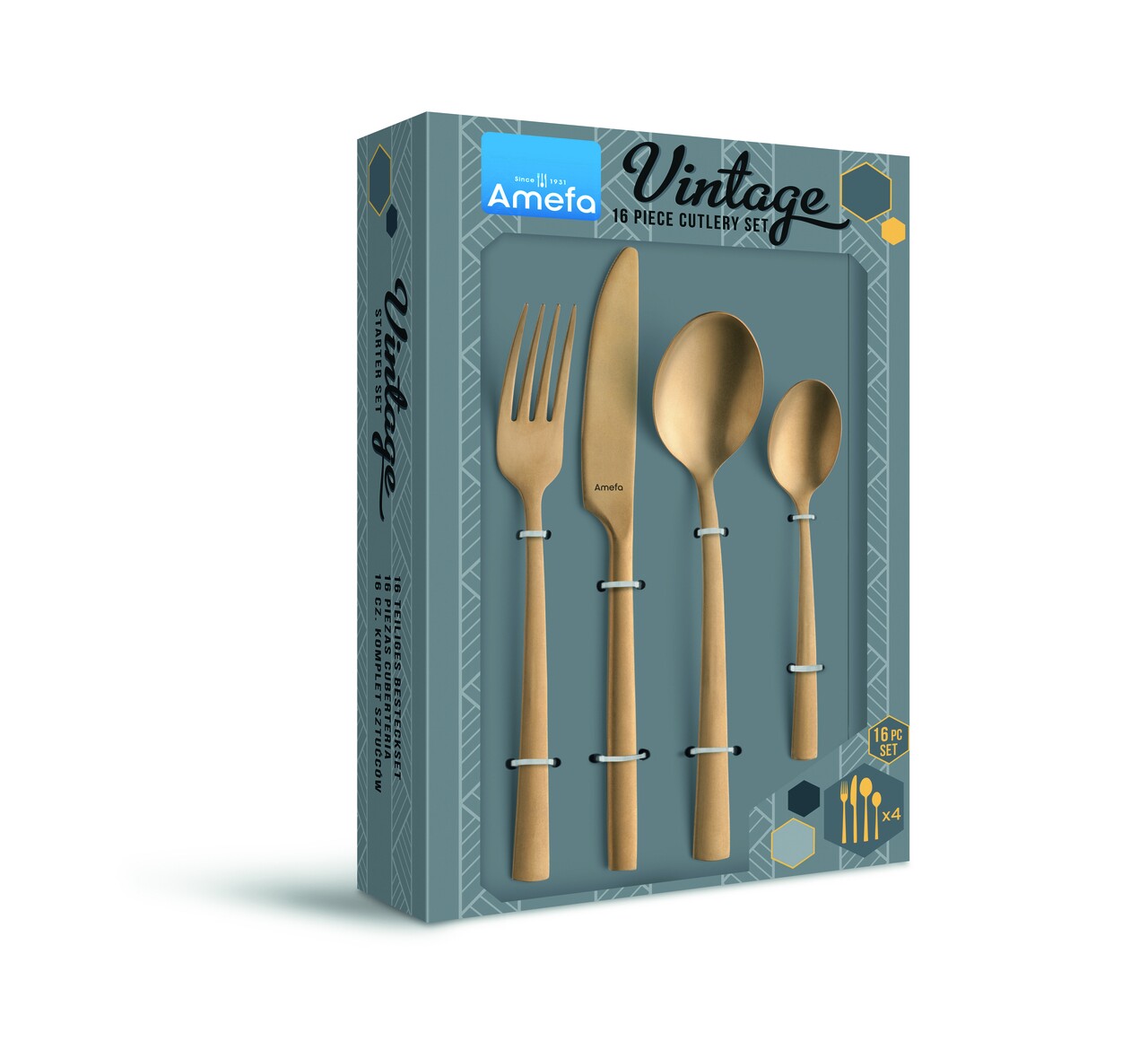 Evőeszközkészlet, 16 db, Amefa, Manila Vintage Gold, rozsdamentes acél, arany