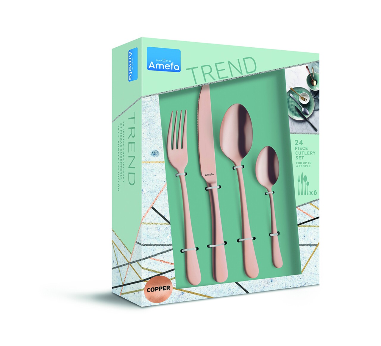 Evőeszközkészlet, 24 db, Amefa, Austin Réz, rozsdamentes acél, réz