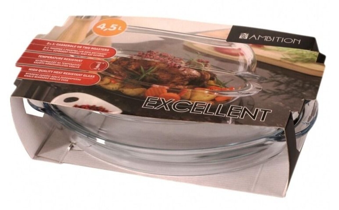 Excellent Hőálló sütőedény fedővel, Ambition, 4.5 L, üveg