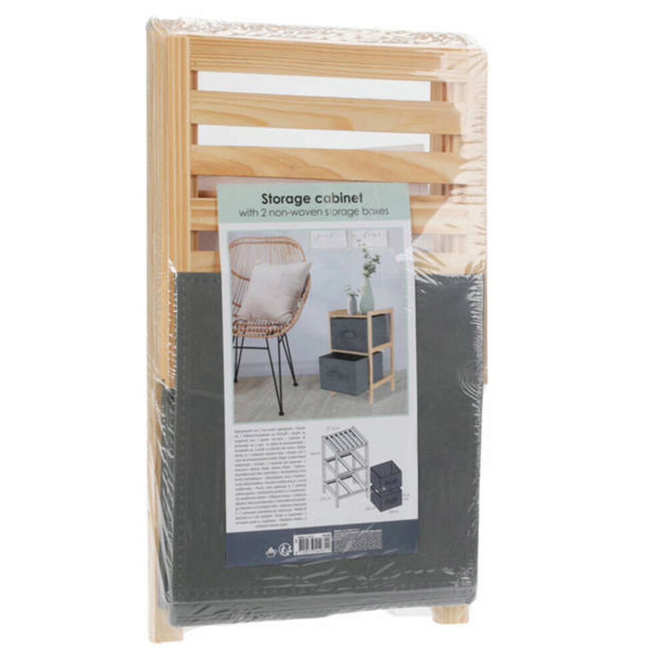 Excellent Houseware Szekrény 2 textil fiókkal, 27.5x25.4x46 cm, erdeifenyő, természetes
