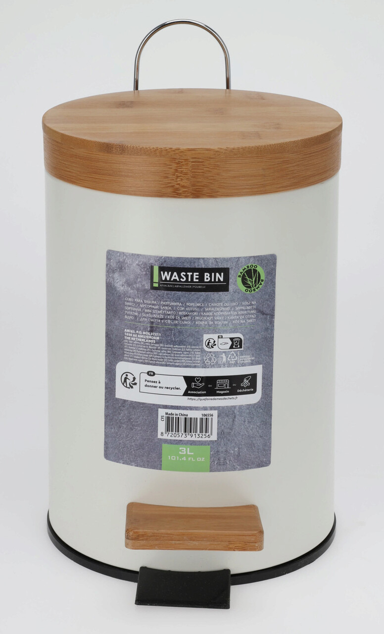 Excellent Houseware Szemetes kosár pedállal, 17x24 cm, 3 L, vas/bambusz fedő, fehér